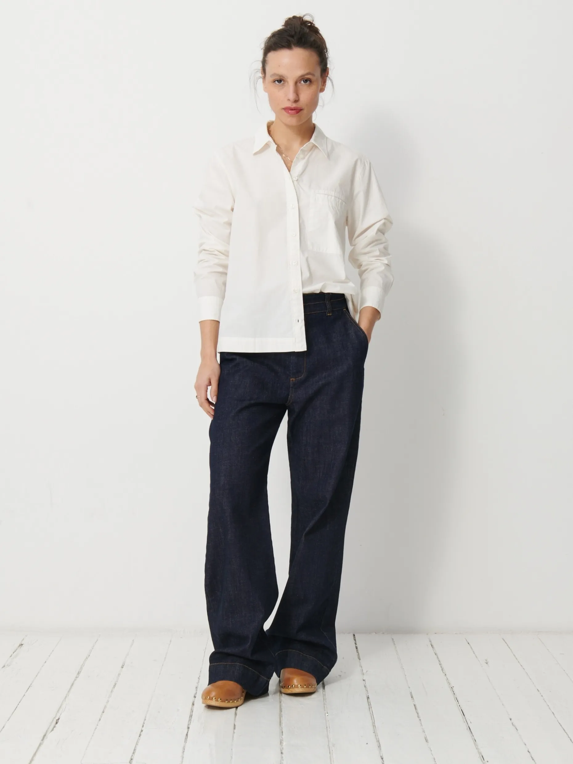 La chemise Galicia est un basique du vestiaire. Elle a une forme « boîte » en viscose imprimée. Son col est classique. Elle est boutonnée sur le devant avec des boutons fantaisie en polyester recyclé. Ses manches sont longues avec des poignets boutonnés.
