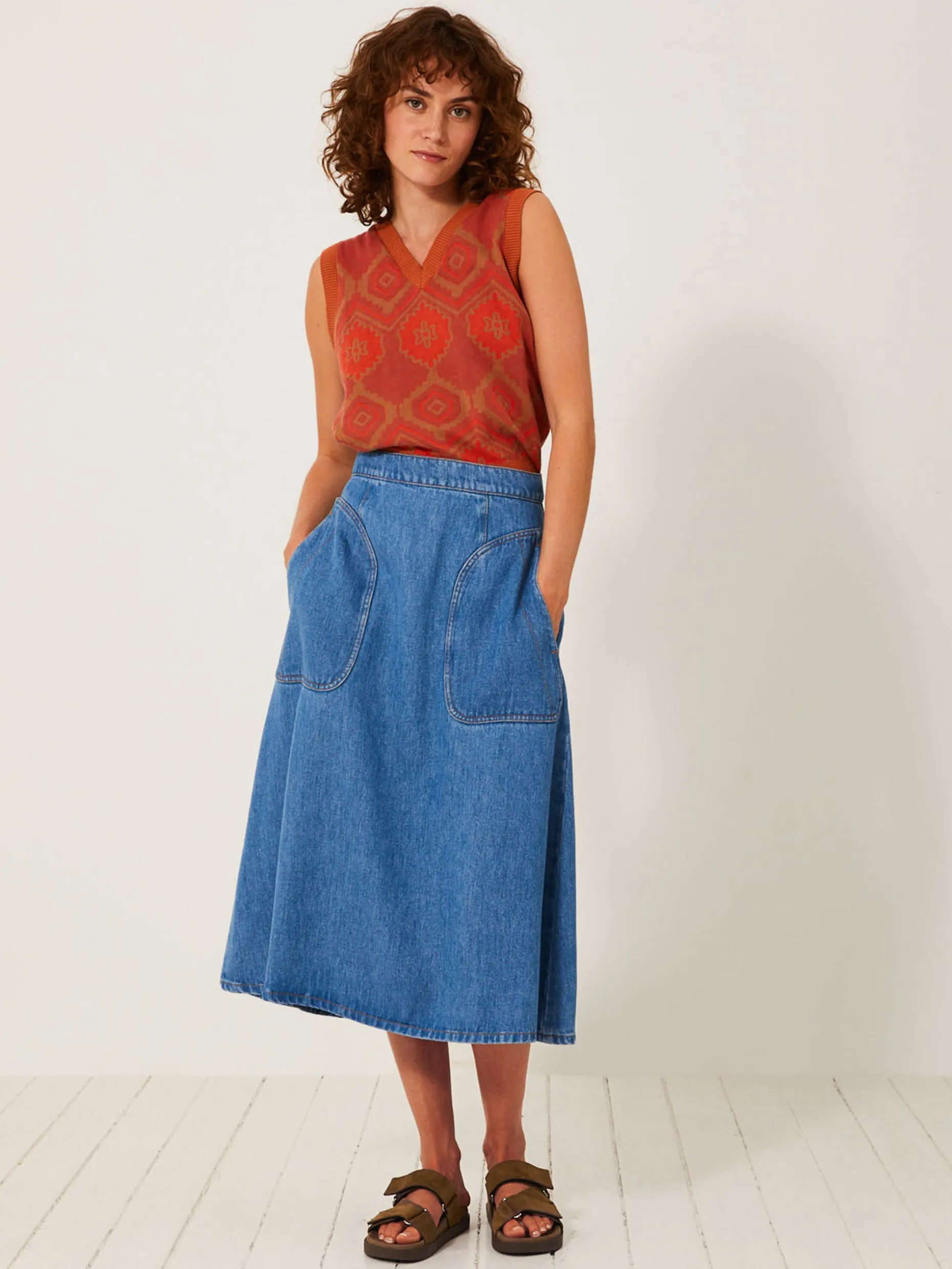 – Jupe mi longue en denim fluide