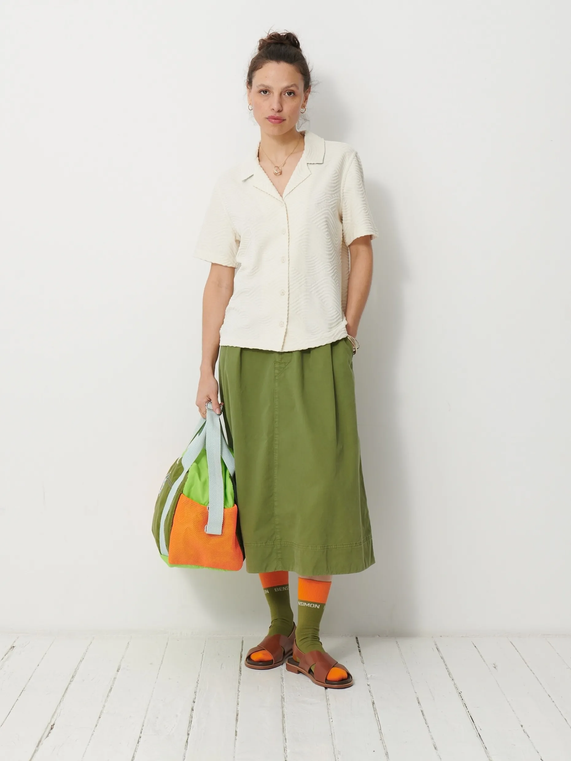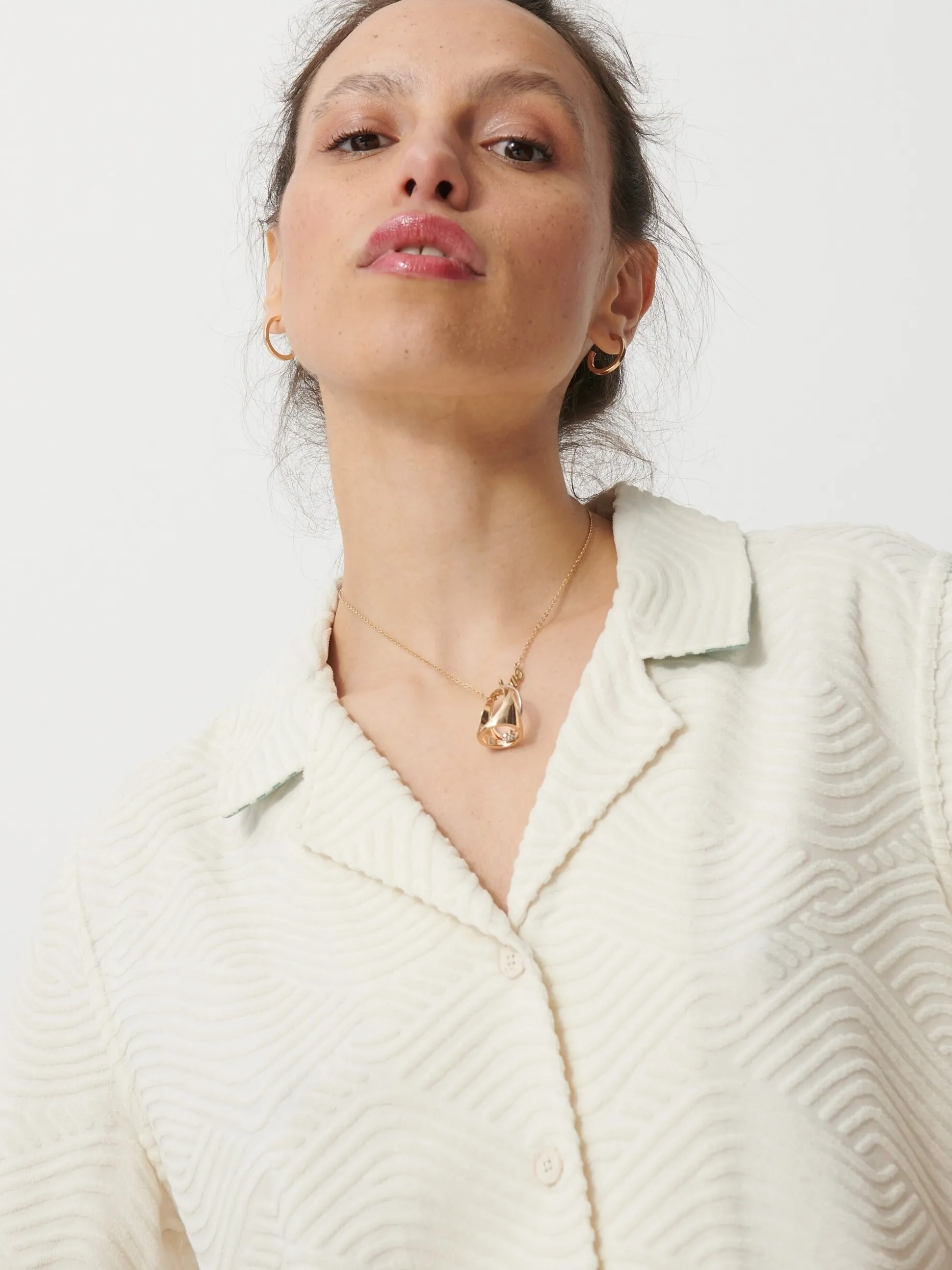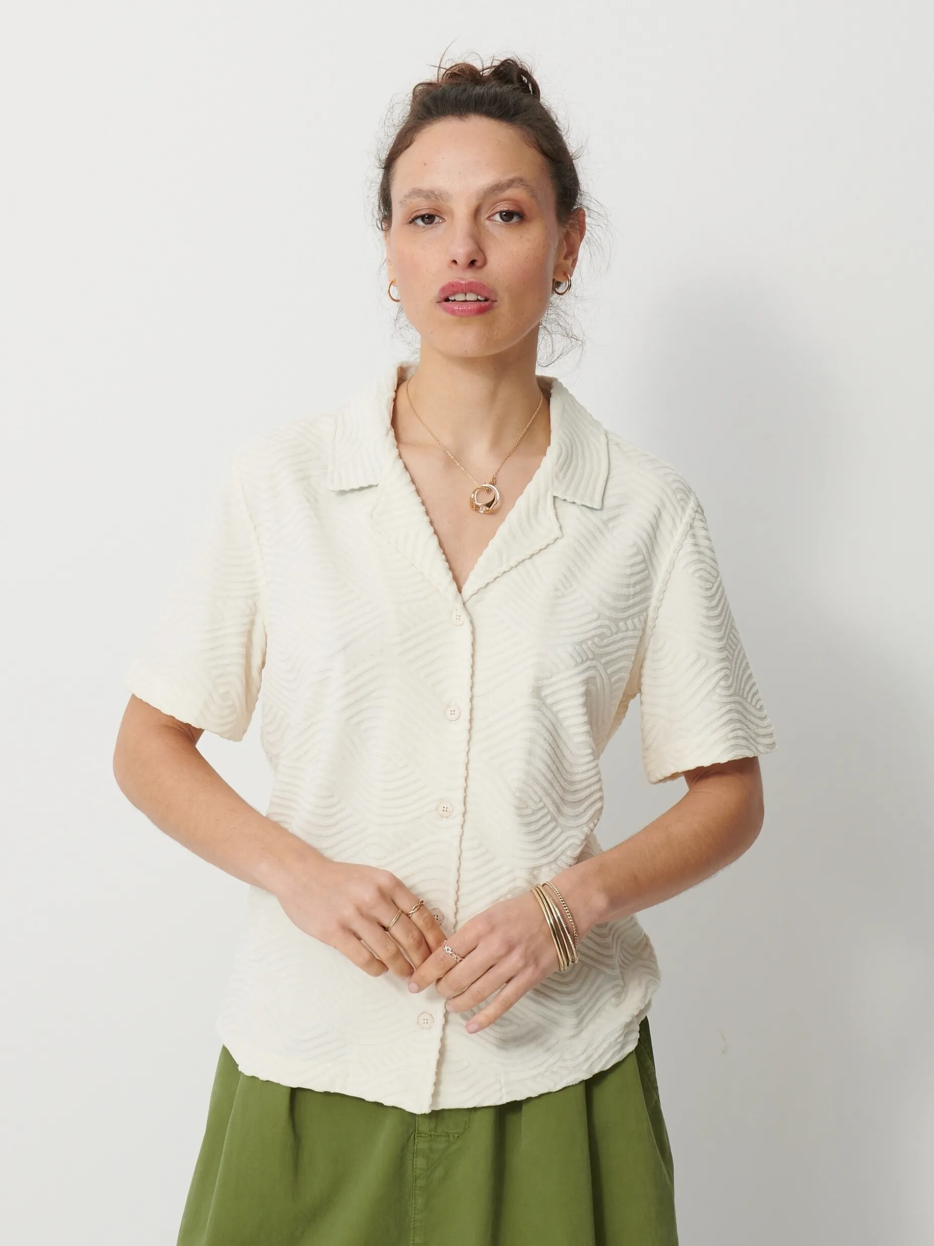 Chemise Hawaiiana en éponge fantaisie. Elle a des manches courtes et un col babane.