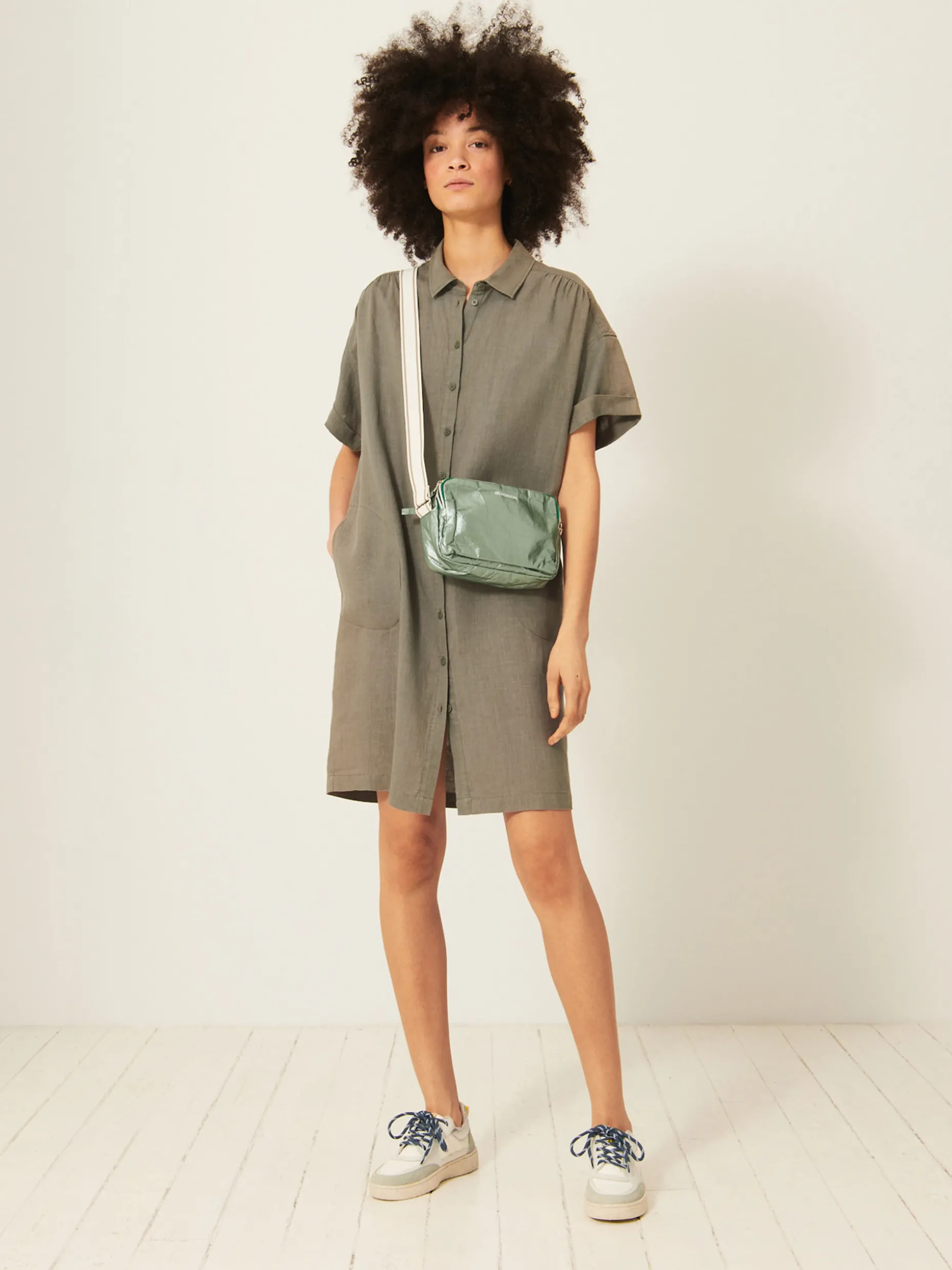 Le crossbody bag est parfait pour emporter avec vous le nécessaire. Ses différentes poches permettent de retrouver facilement ce que l’on cherche. Sa bandoulière réglable permet de régler sa taille. Côté style, on mise sur une forme rectangulaire aux coins arrondis : un intemporel du vestiaire. Que l’on vient twister en misant sur un polyester métallisé qui compte bien faire de l’ombre au soleil.