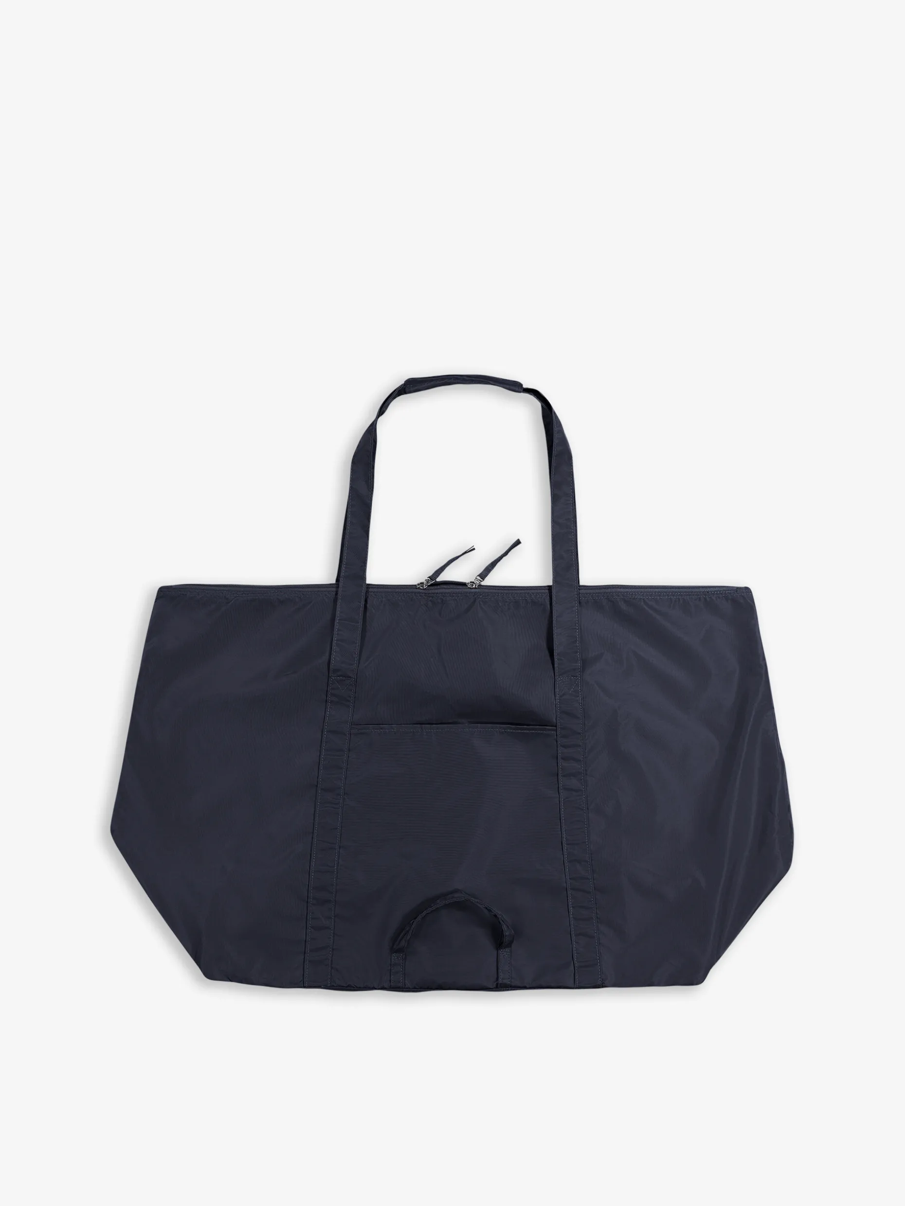 Sac à grande contenance rétractable dans une petite pochette. Fermeture zippée. Dimensions : 56 x 28 x 45 cm.