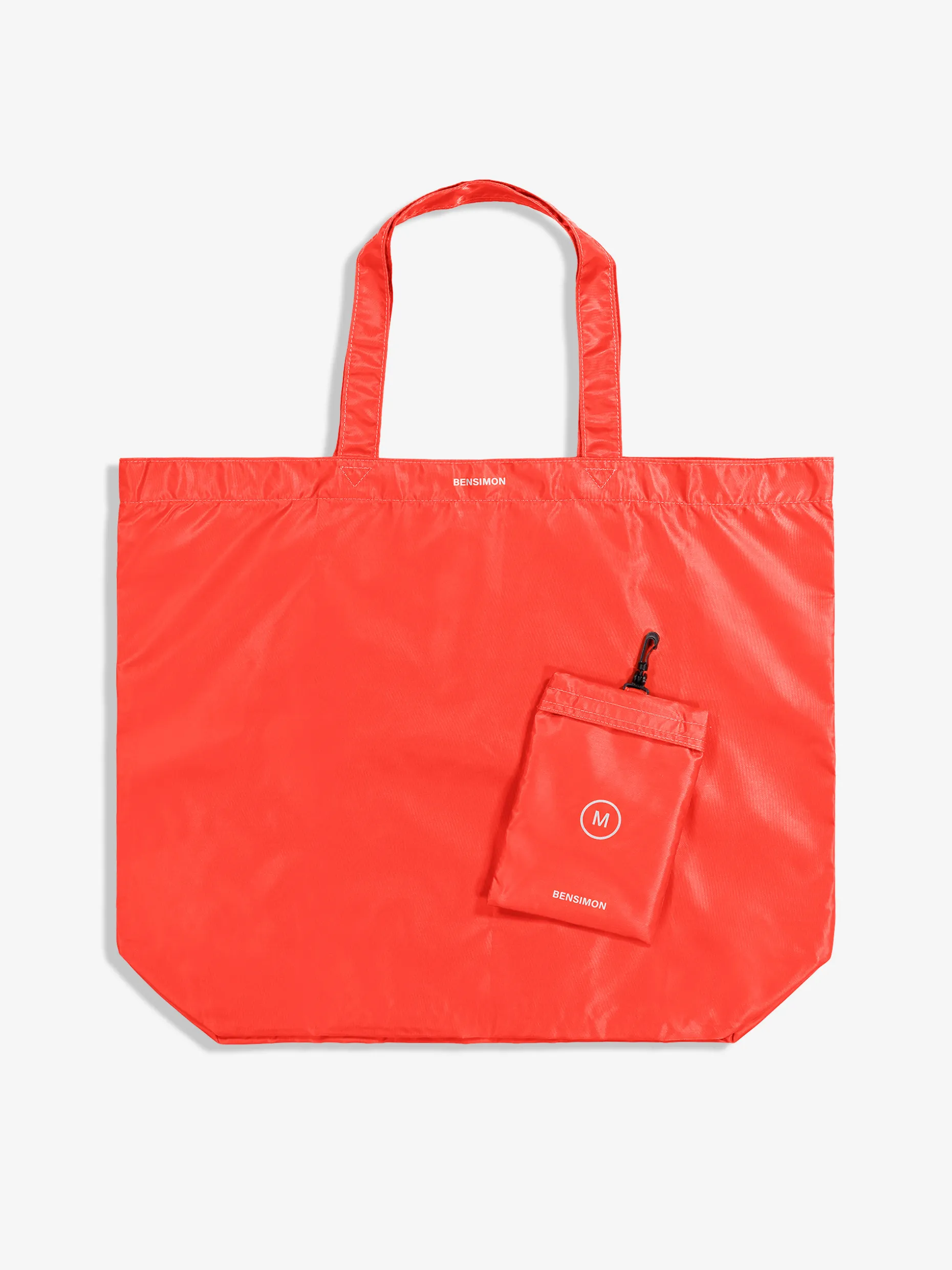 Sac extra bag M en format moyen qui se rétracte dans une petite pochette. Il dispose d’une poche intérieure. Sa fermeture se fait par bouton-pression. Dimensions : 40 cm de long, 14 cm de large, et 44,5 cm de haut.