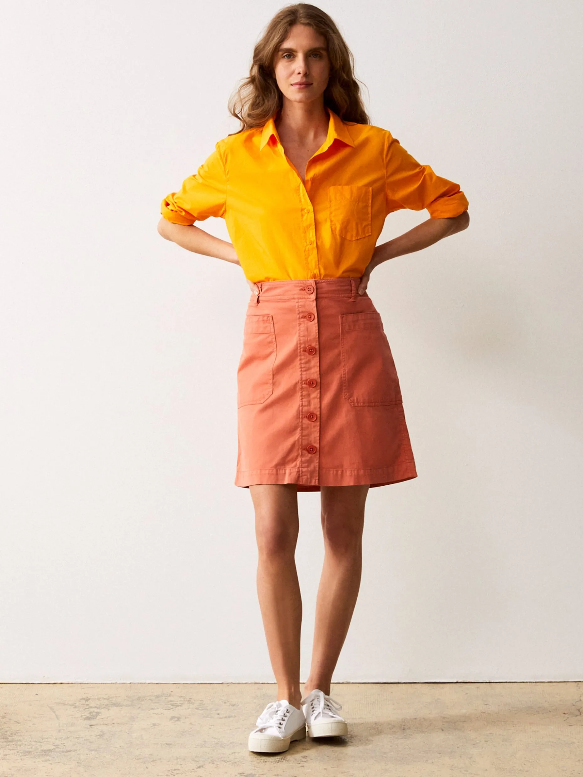 Dans la famille des indispensables du vestiaire estival, on appelle Camillo. La jupe boutonnée à l’avant qui souligne la taille avec légèreté et qui s’associe avec facilité à tous vos tops et chemises. Ses deux grandes poches plaquée à l’avant apportent du caractère à cet intemporel.
