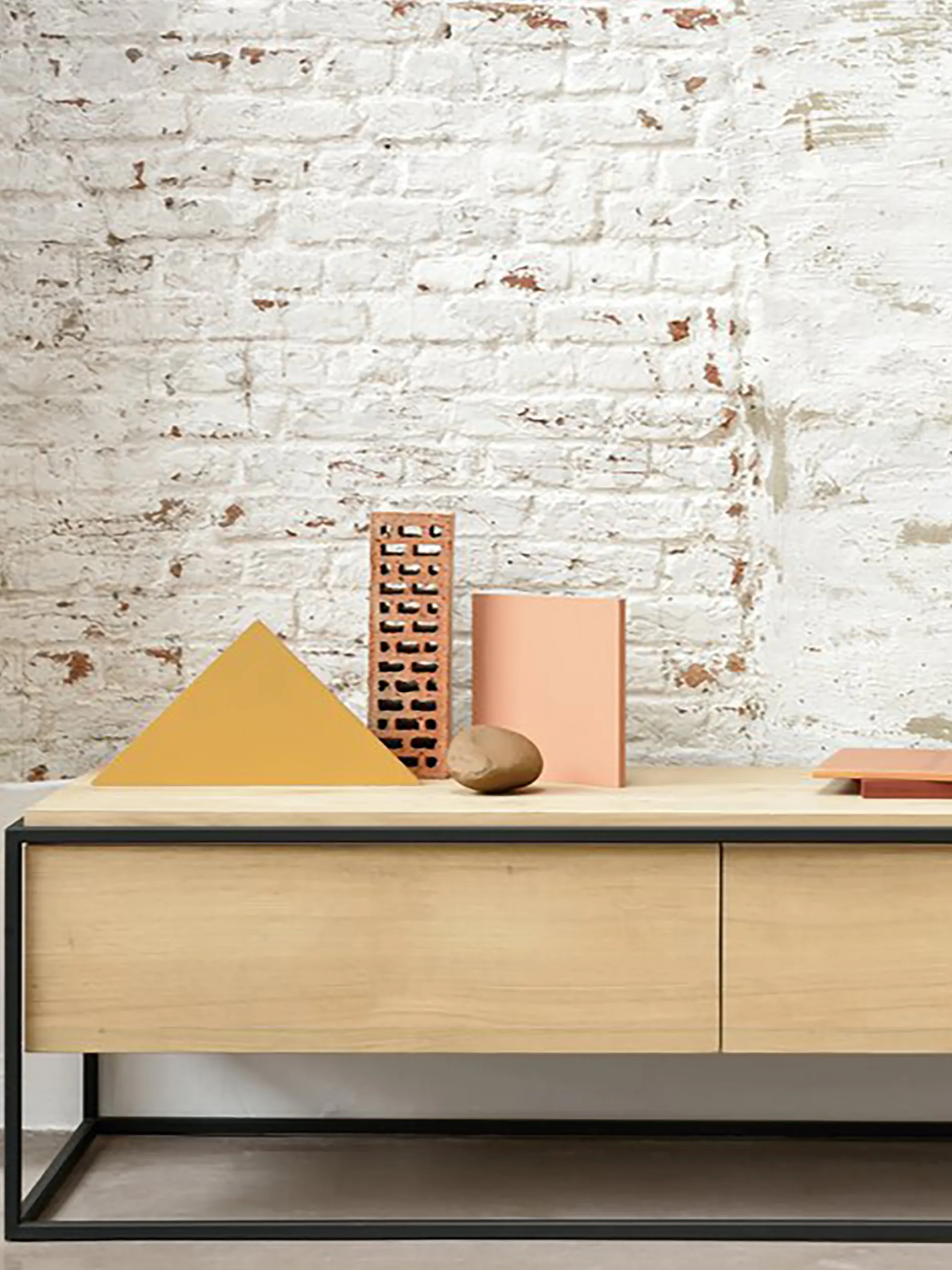 Imaginé par Sascha Sartory dans un style très épuré, ce meuble bas Monolit se compose d’un corps en chêne massif inséré dans un cadre graphique et aérien en métal noir. Avec une porte et un tiroir, ce buffet fonctionnel a tous les atouts pour compléter l’aménagement d’un espace à la déco minimaliste et peut faire office de meuble TV. Dans un souci de beauté authentique, le bois sélectionné au sein de forêts européennes peut contenir des noeuds et des fissures naturelles qui font de chaque meuble une pièce unique. La collection Monolit se décline en plusieurs modèles.