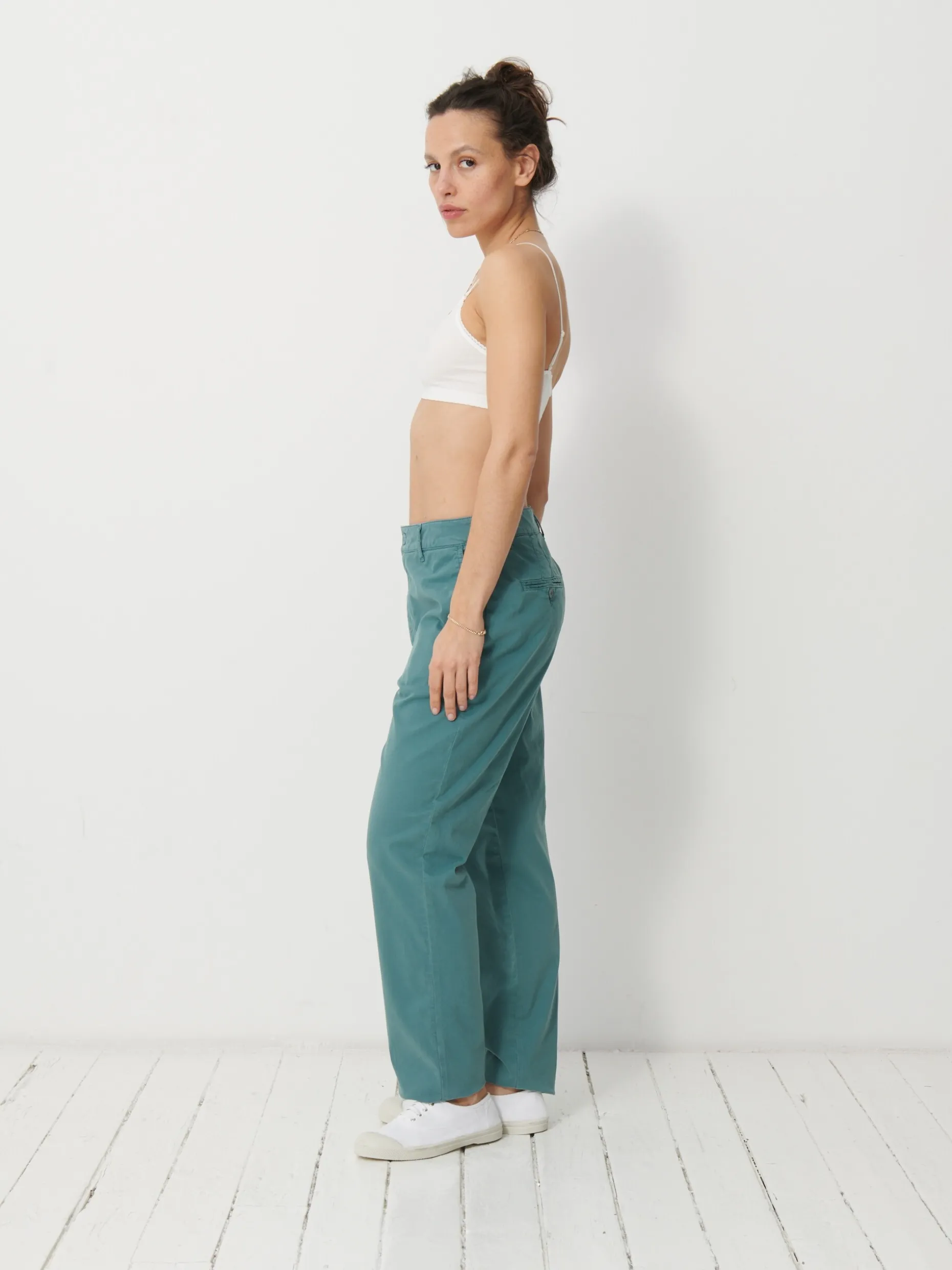 Le pantalon Bégonia est un pantalon cigarette en gabardine. Il dispose de poches italiennes à l’avant et de poches passepoilées au dos.
