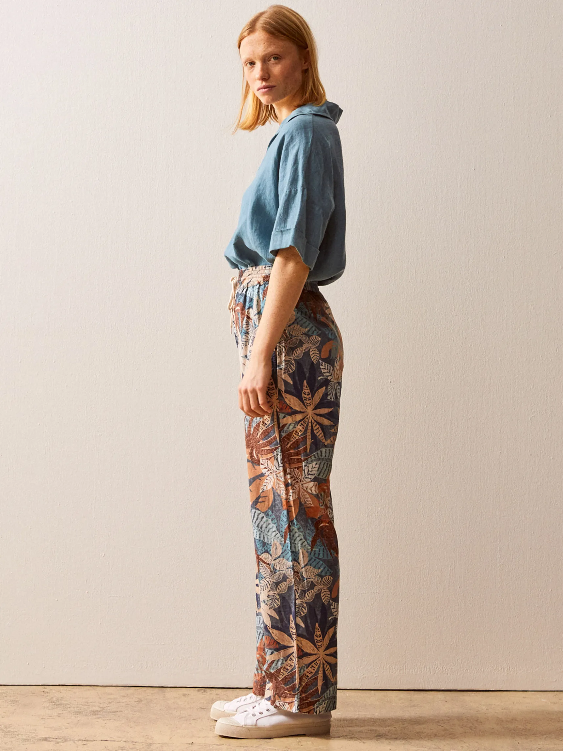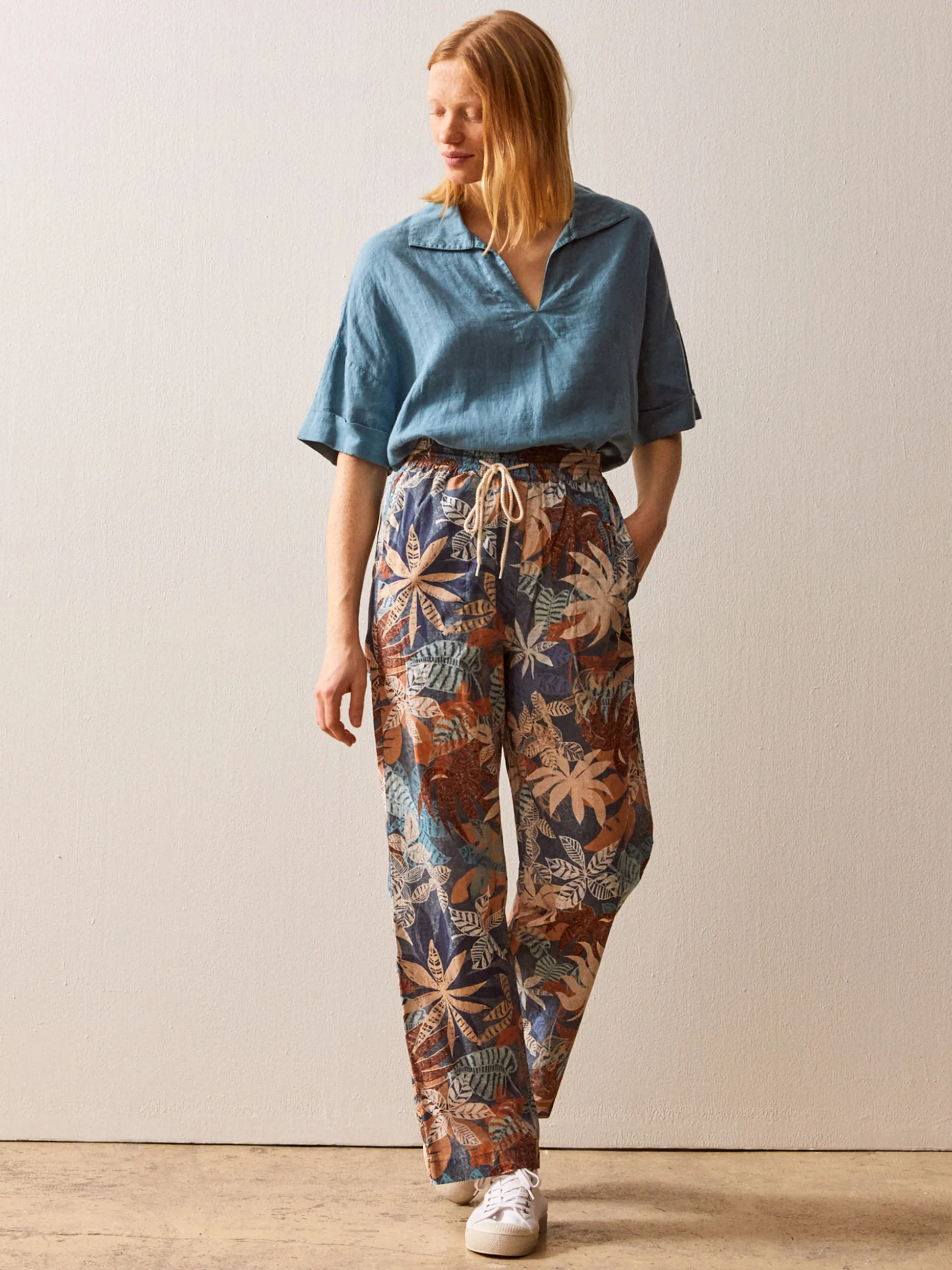 Votre meilleur allié de la saison répond au doux nom de Gunther. Aérien à souhait, tissu léger pour laisser respirer, taille élastiquée pour s’adapter à toutes les formes : notre pantalon Gunther compte bien se faire une place de choix dans votre vestiaire estival. Cette saison, une jungle colorée prend vie sur Gunther. Et notre petit doigt nous dit que notre imprimé exclusif « Cruise » ne va pas passer inaperçu.