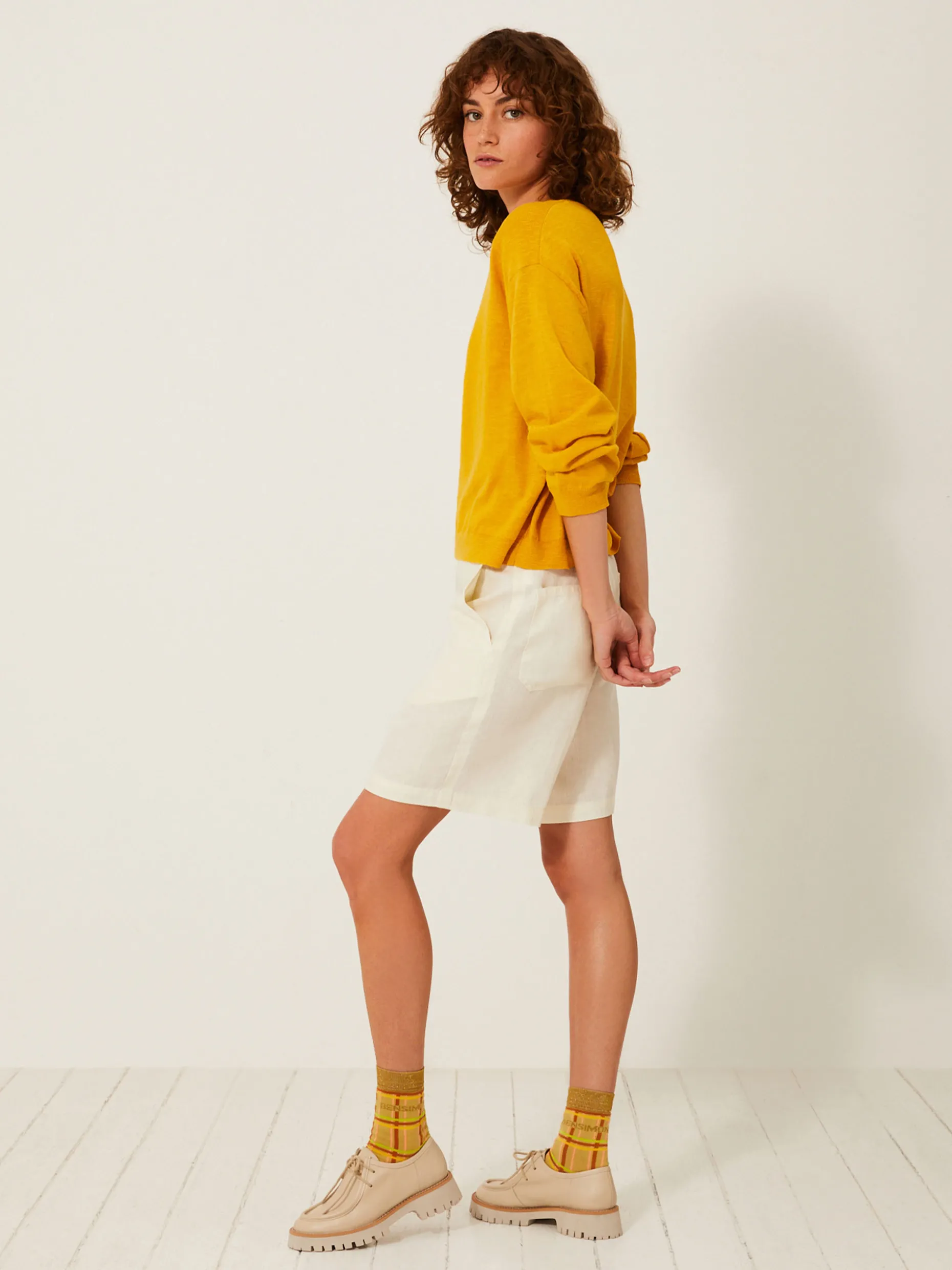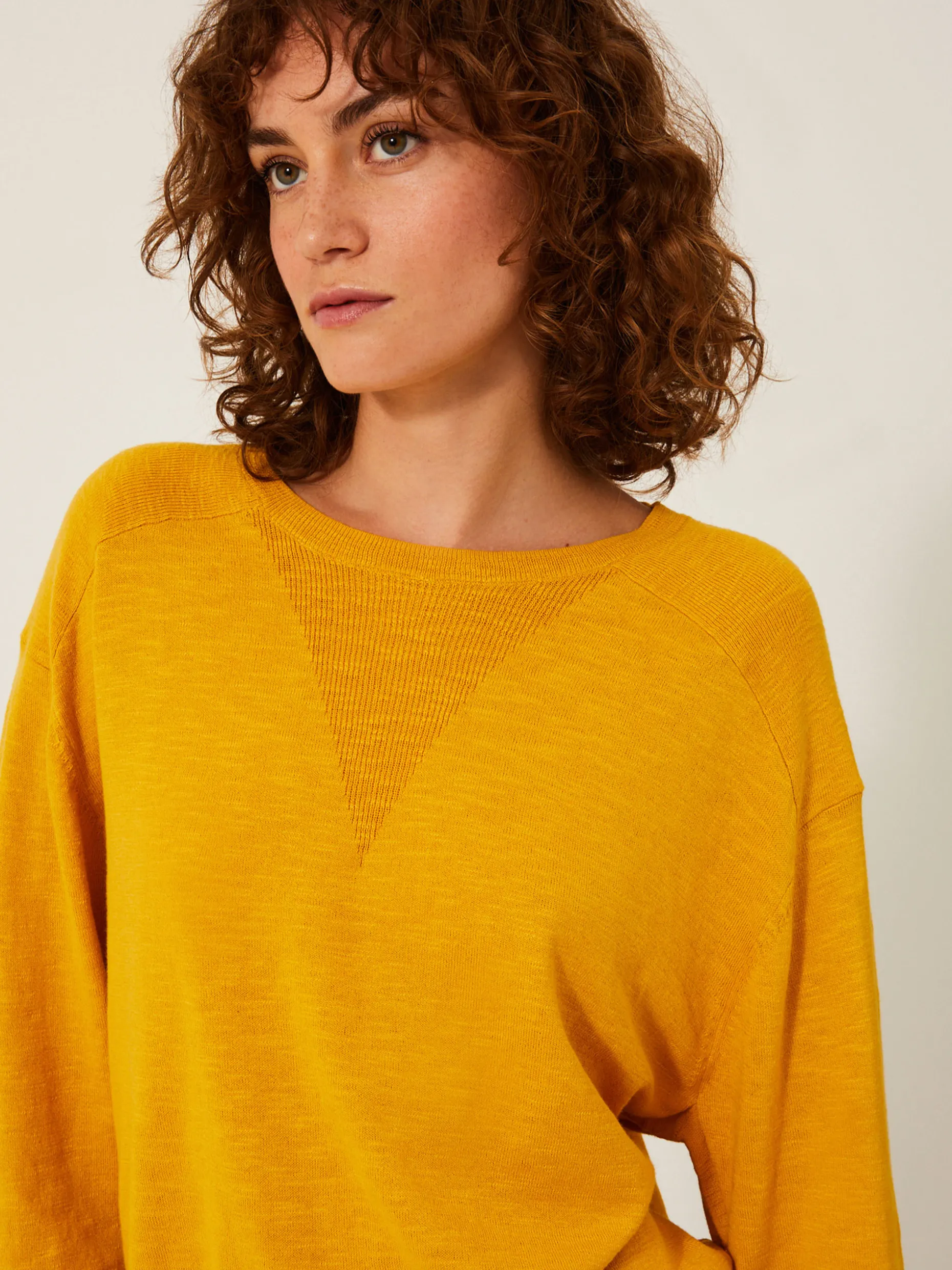 Coupe intemporelle, motif travaillé et matière aérée, nos mailles se font plus légères et se parent de couleurs acidulées et solaires pour illuminer nos vestiaires. Fabriquée avec le plus grand soin dans les meilleurs ateliers spécialisés, le pull Léna illustre à merveille toute la créativité et le savoir-faire Bensimon. Il prend vie dans une maille lin flammé sublimé par un jeu de maille à l’envers tout au long des coutures côté. Une coupe qui reprend tous les codes du sweatshirt, l’insert en V au niveau du col, tout en le féminisant.