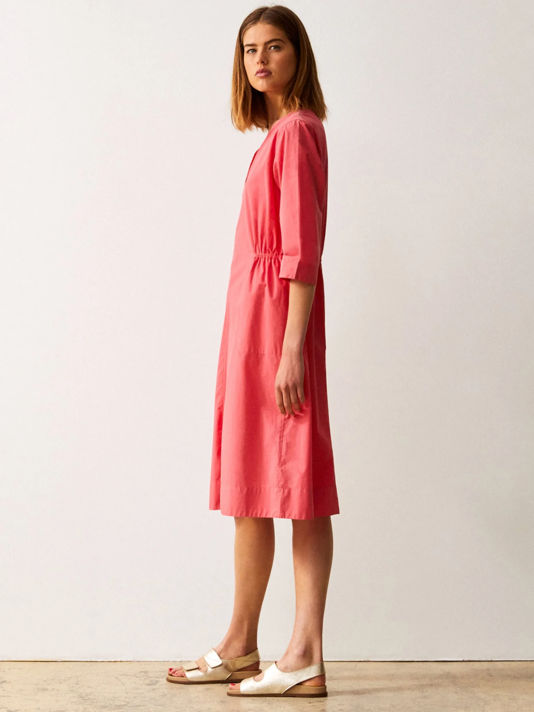 Avant de boucler vos valises, laissez-nous vous présenter Hadda. Une robe en popeline aux manches 3/4 qui compte bien passer l’,été avec vous. Élastiquée à la taille, elle sublime vos courbes en délicatesse. Son encolure ronde avec fente et son ouverture à l’,avant dévoilent juste ce qu’,il faut. Sa longueur est parfaite pour faire du vélo, faire des galipettes et flâner du lundi au dimanche inclus. Tandis que ses poques plaquées dans les coutures côtés permettent de glisser les jolis coquillages trouvés. Ah on est si bien en robe Hadda.