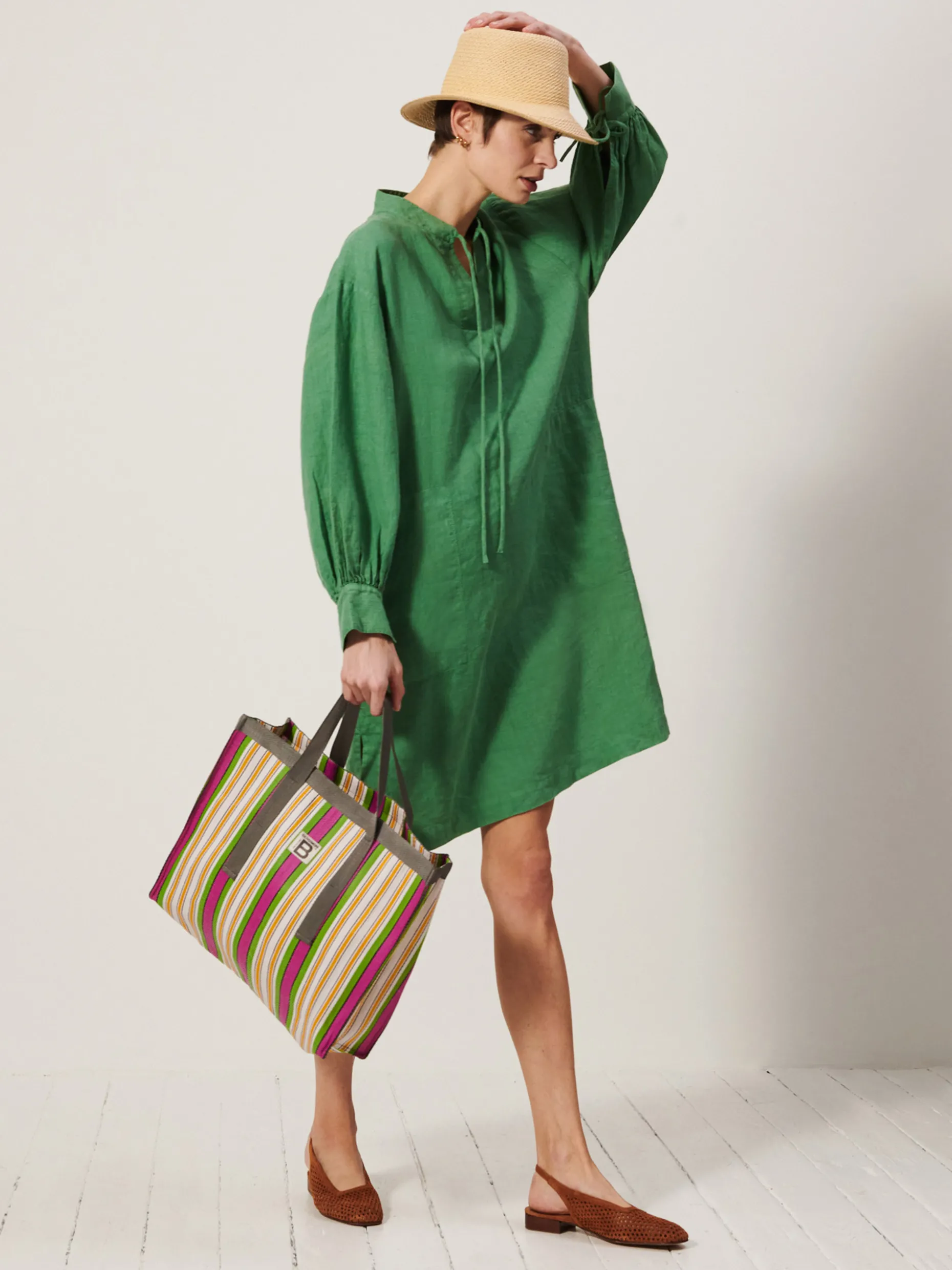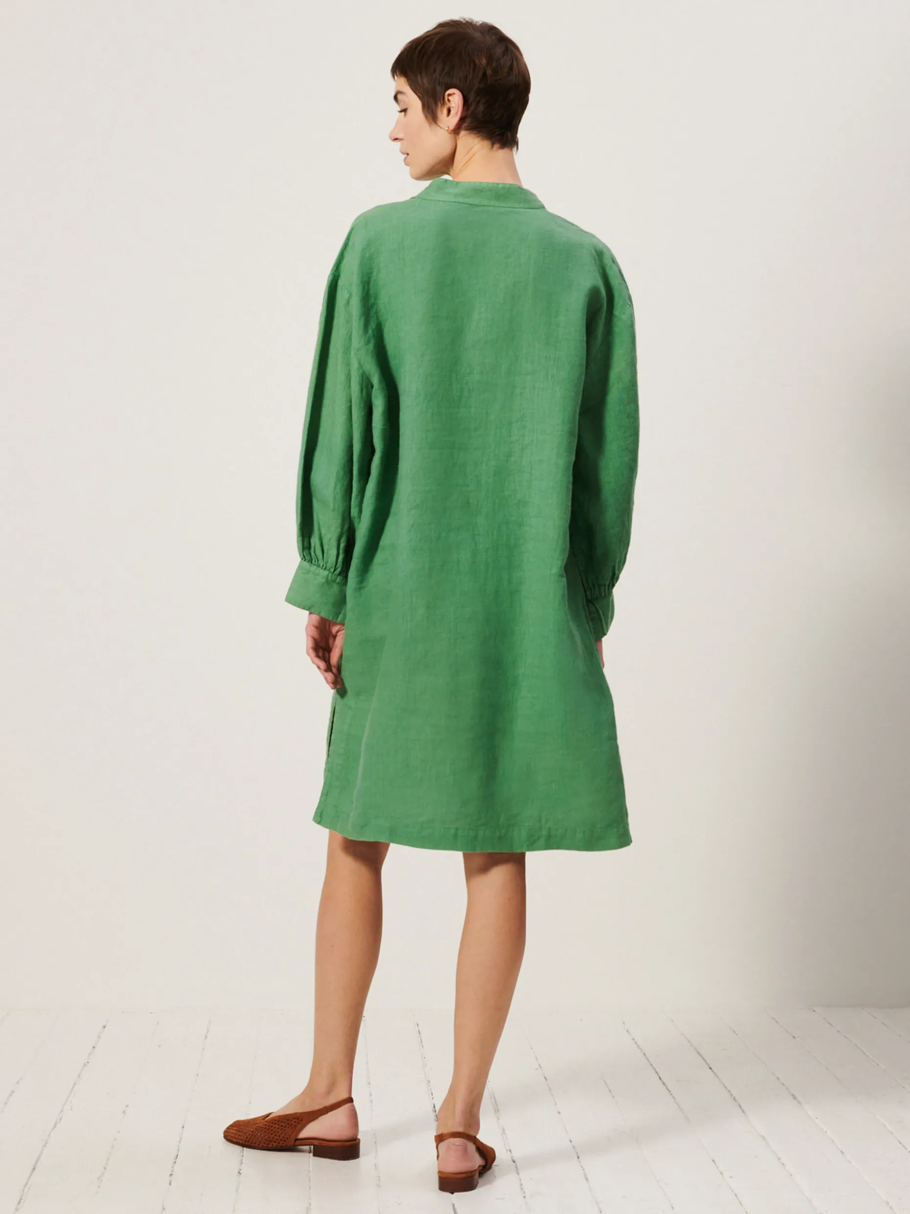 Le temps est bon. Le soleil nous brûle la peau. Quoi de plus désaltérant que le lin pour notre peau ? Matière estival par excellence, on mise sur le lin pour donner vie à la robe Jossie. Une robe loose au col mao qu’,il suffit d’,enfiler pour laisser la magie opérer. Parfaite pour un look effortless de tous les jours.