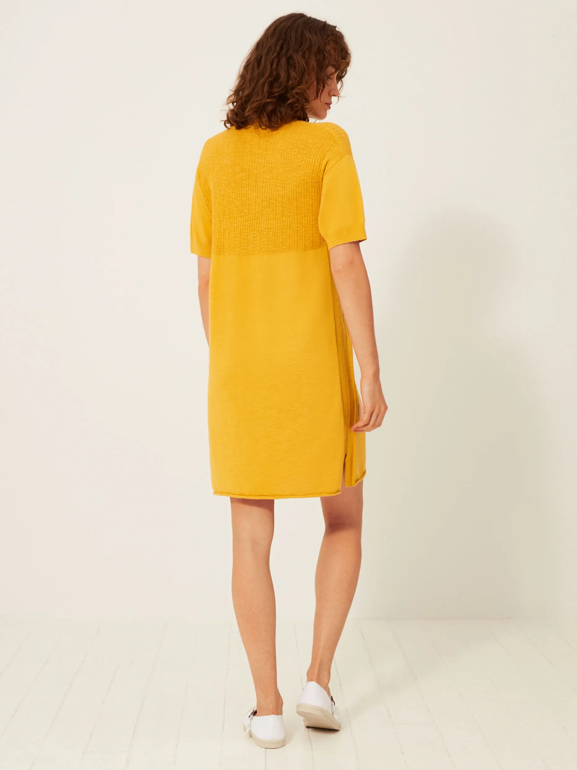 Coupe intemporelle, motif travaillé et matière aérée, nos mailles se font plus légères et se parent de couleurs acidulées et solaires pour illuminer nos vestiaires. Fabriquée avec le plus grand soin dans les meilleurs ateliers spécialisés, la robe Lamia illustre à merveille toute la créativité et le savoir-faire Bensimon. Elle prend vie dans une maille lin flammé sublimé par un jeu de tricotage et des irrégularités. Décolleté V, longueur genoux, point fantaisie à l’avant, jeu de maille à l’envers tout au long des coutures côtés, cette robe est un essentiel de la saison. L’été peut commencer.
