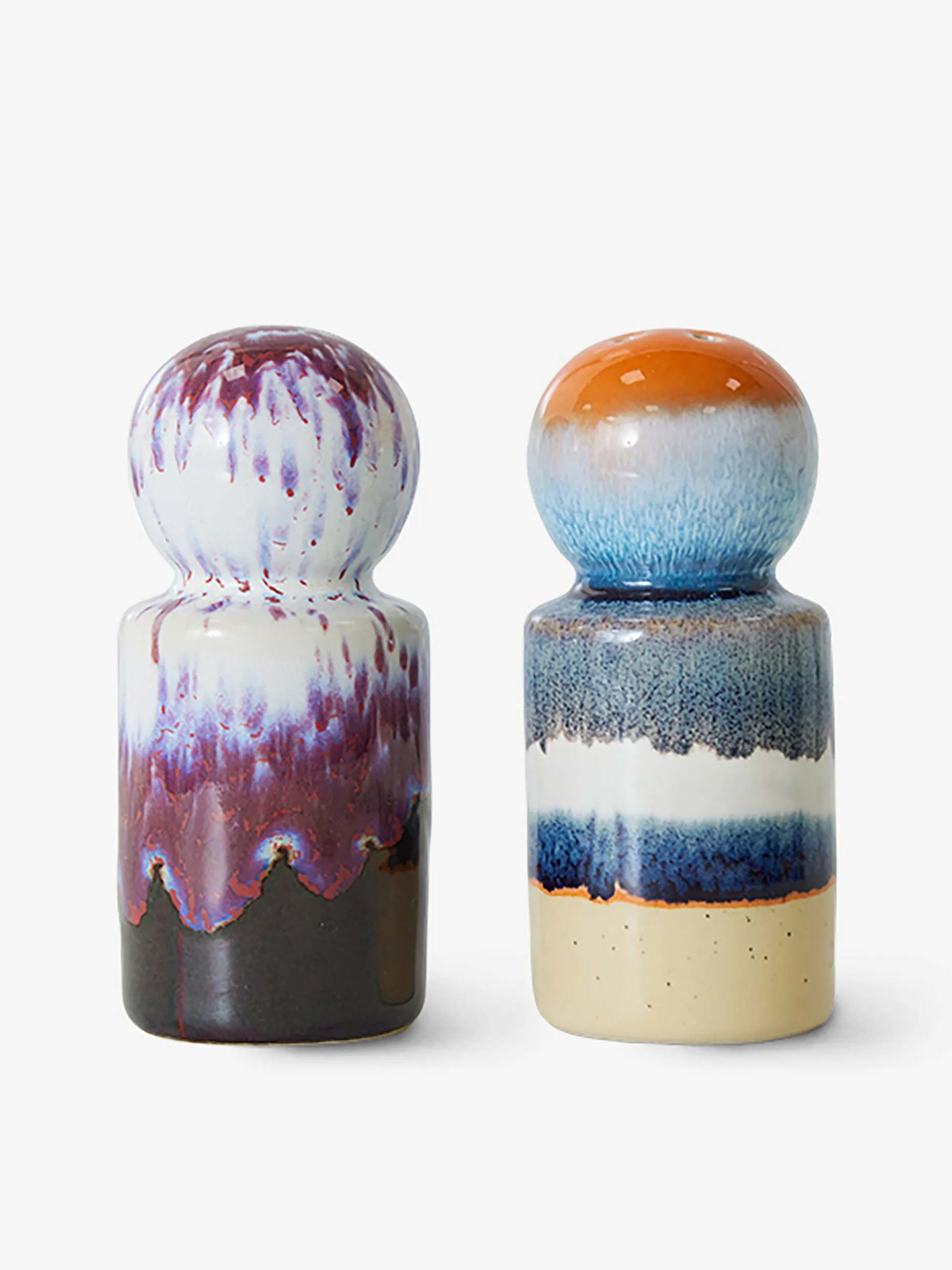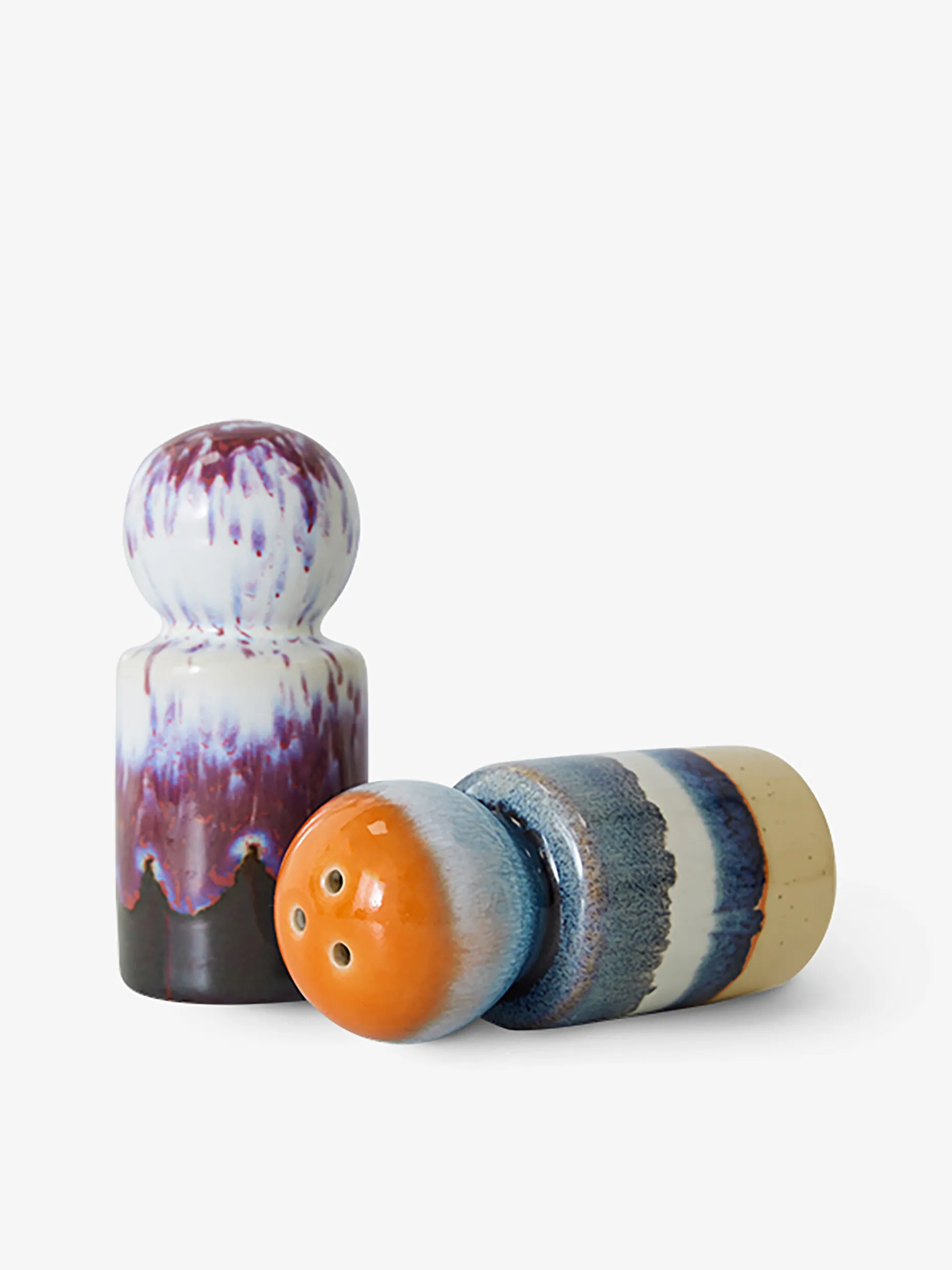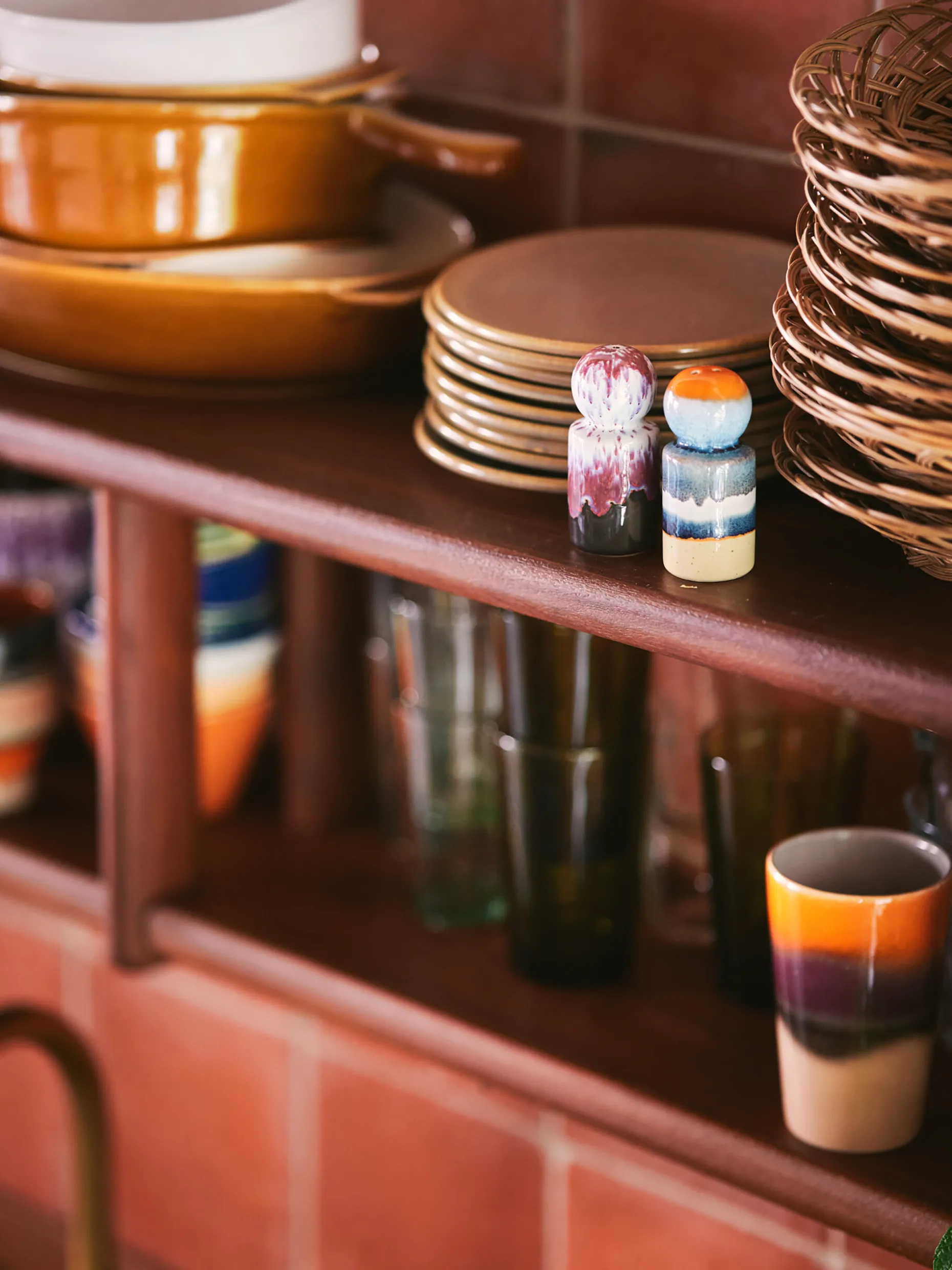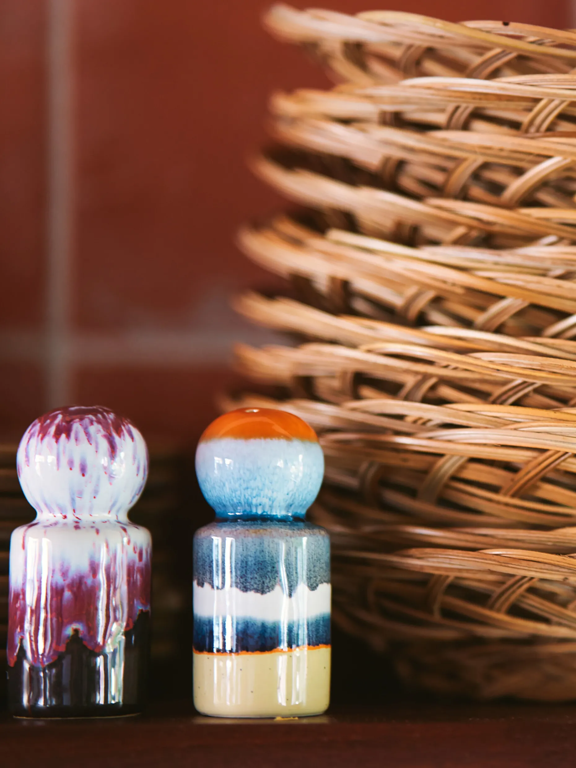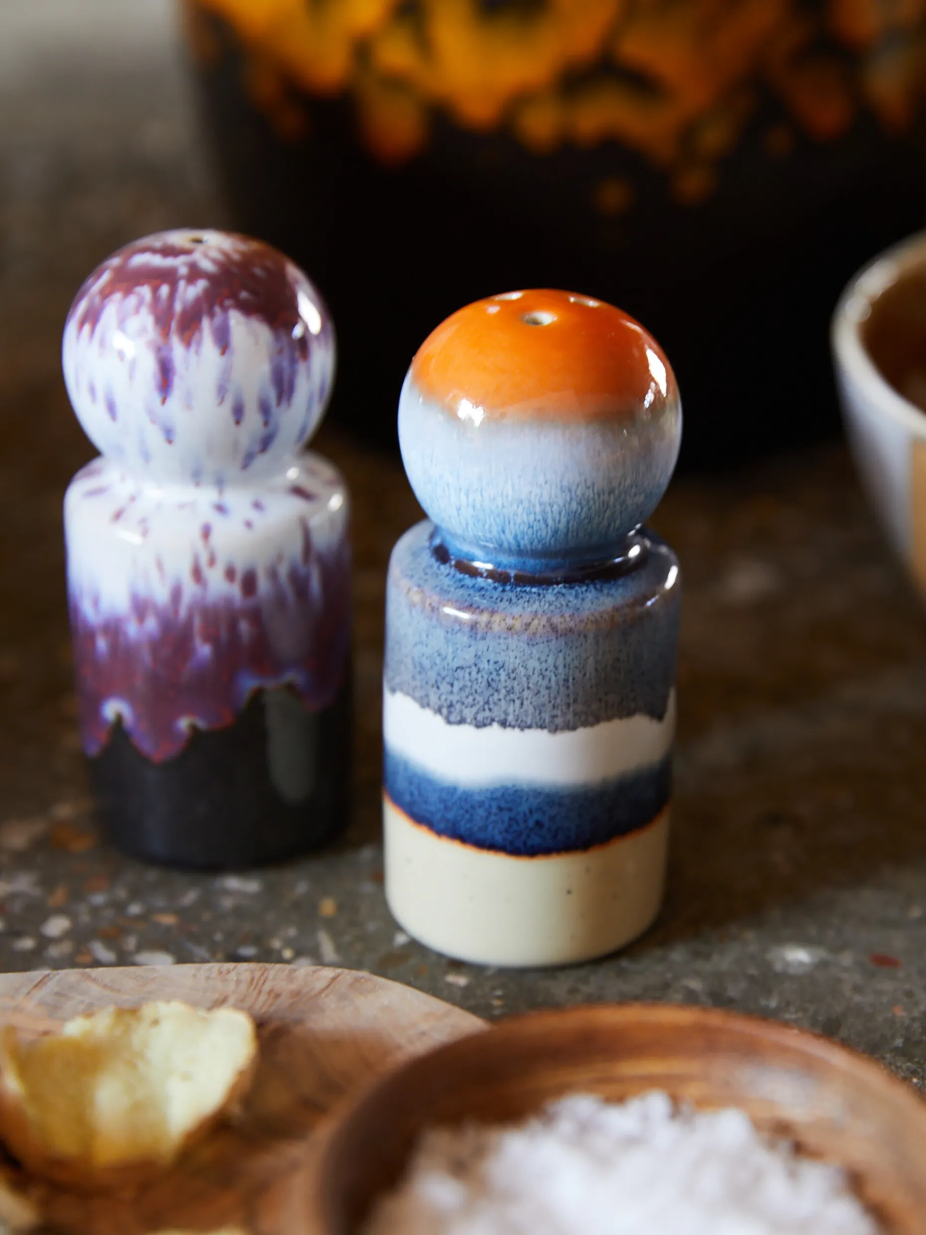Bannissez les salières et poivrières de supermarché et servez-les dans des pots en céramique des années 70, comme au bon vieux temps.