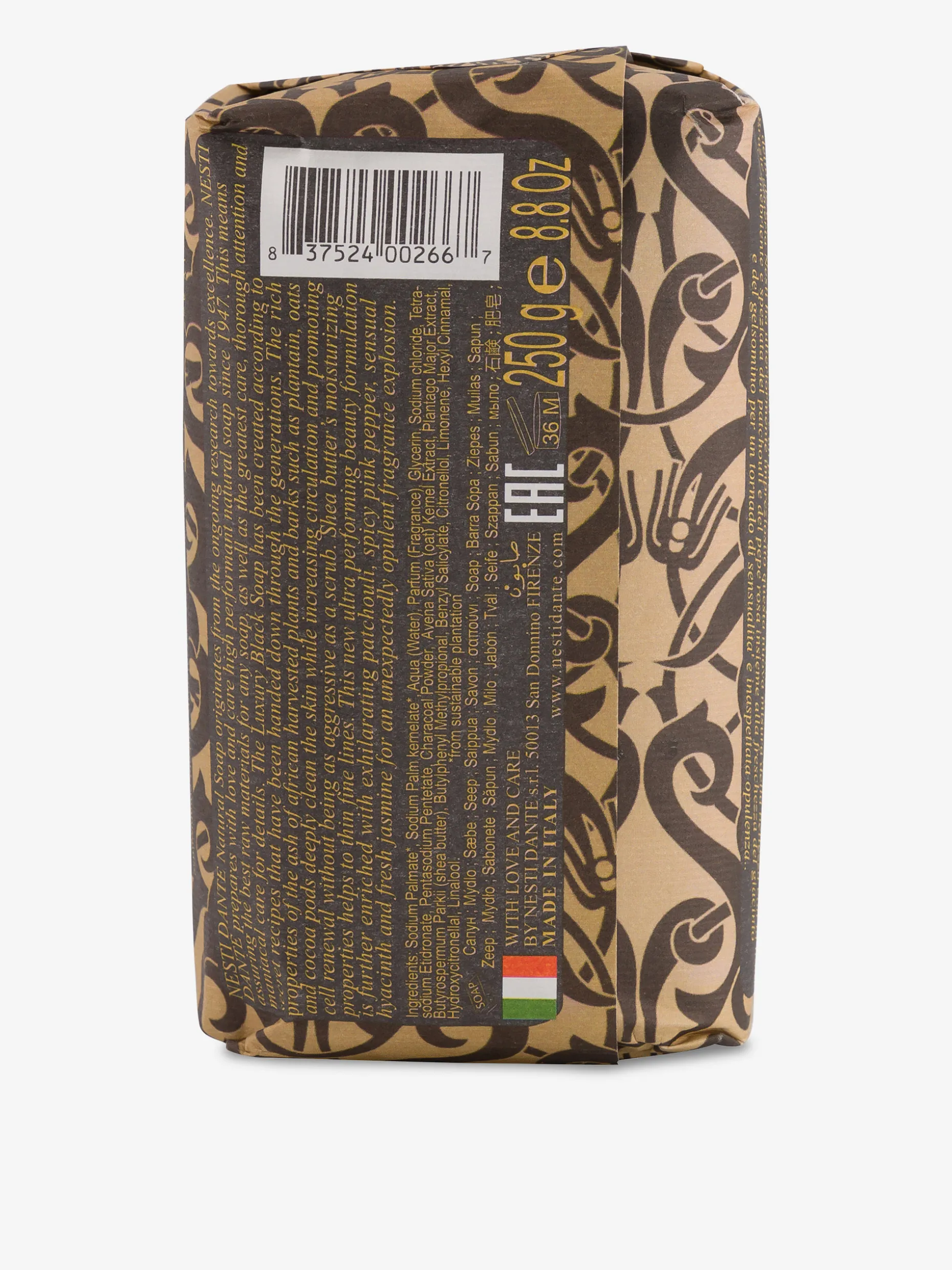 Savon enrichi au charbon actif, parfums d’orient végétal, à base d’extrait de feuilles de Patchouli, de poivre rose, de hyacinth et de jasmin frais. Fabriqué à Florence, Italie, selon les méthodes artisanales de saponification par Nesti Dante, 100 % à base d’ingrédients naturels et végétales, testé dermatologiquement, non testé sur les animaux.