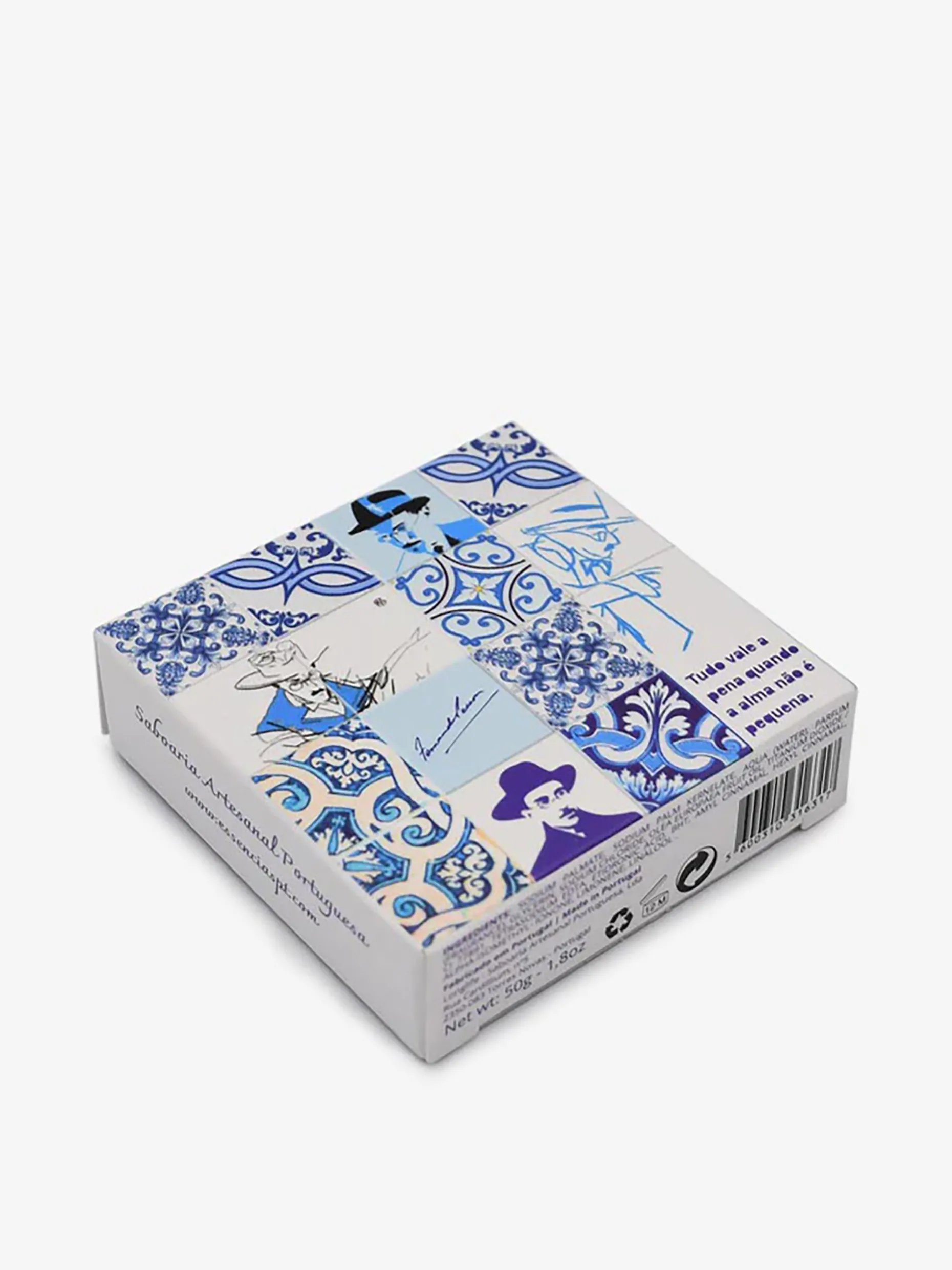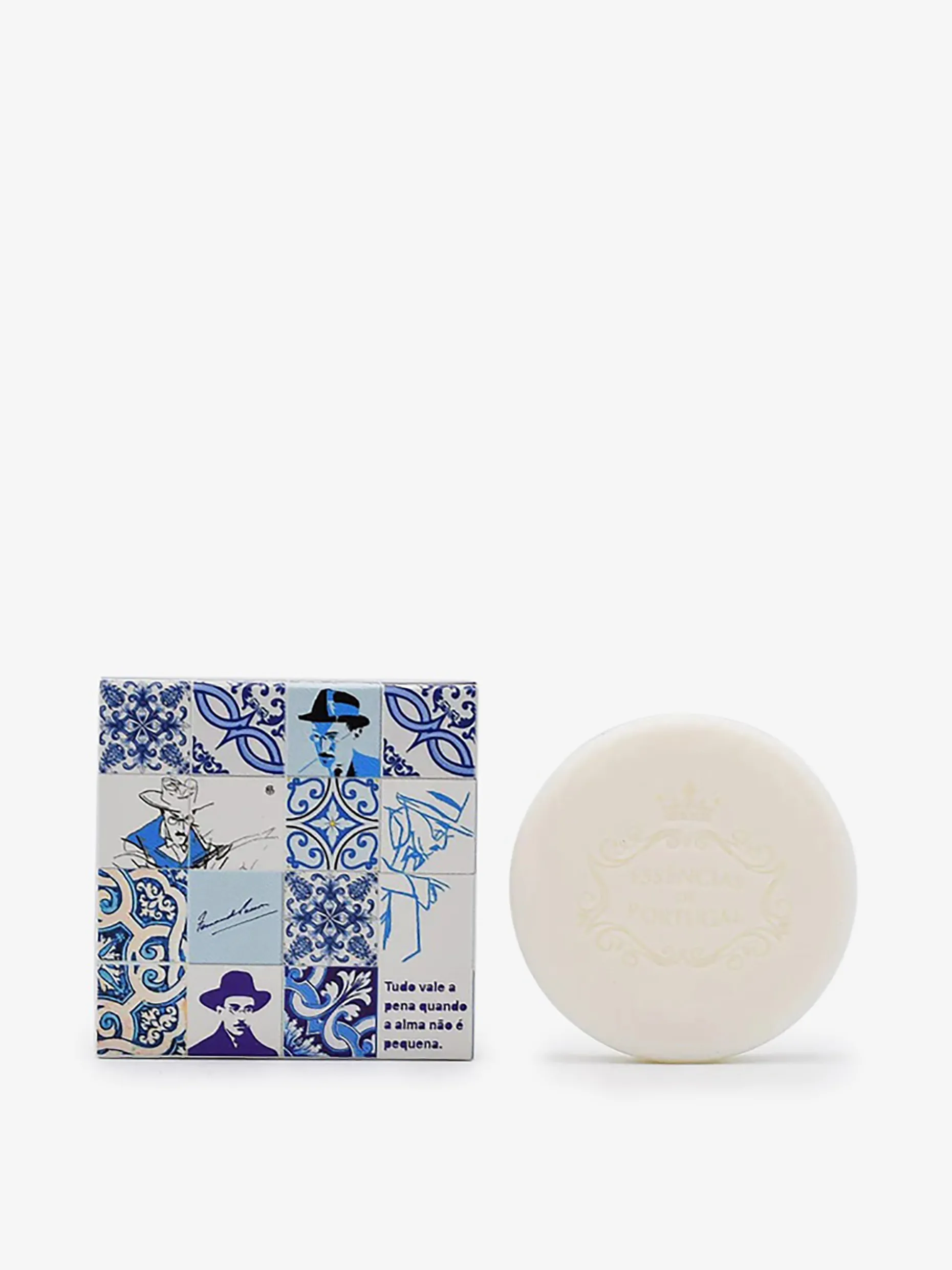 Un petit savon tout rond au parfum de pomme et enrichi en huile d’olive, avec un emballage évoquant le fameux écrivain et poète portugais Fernando Pessoa.