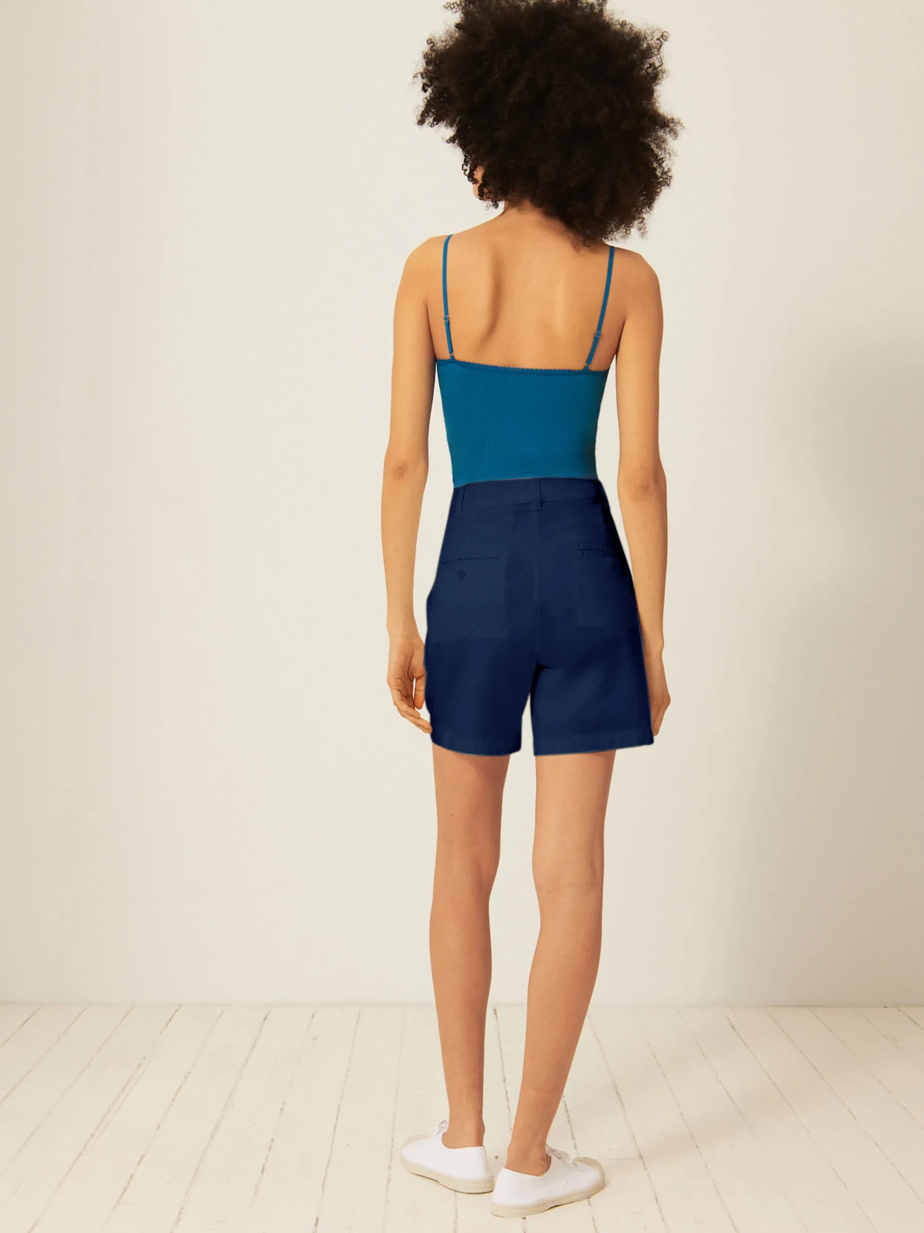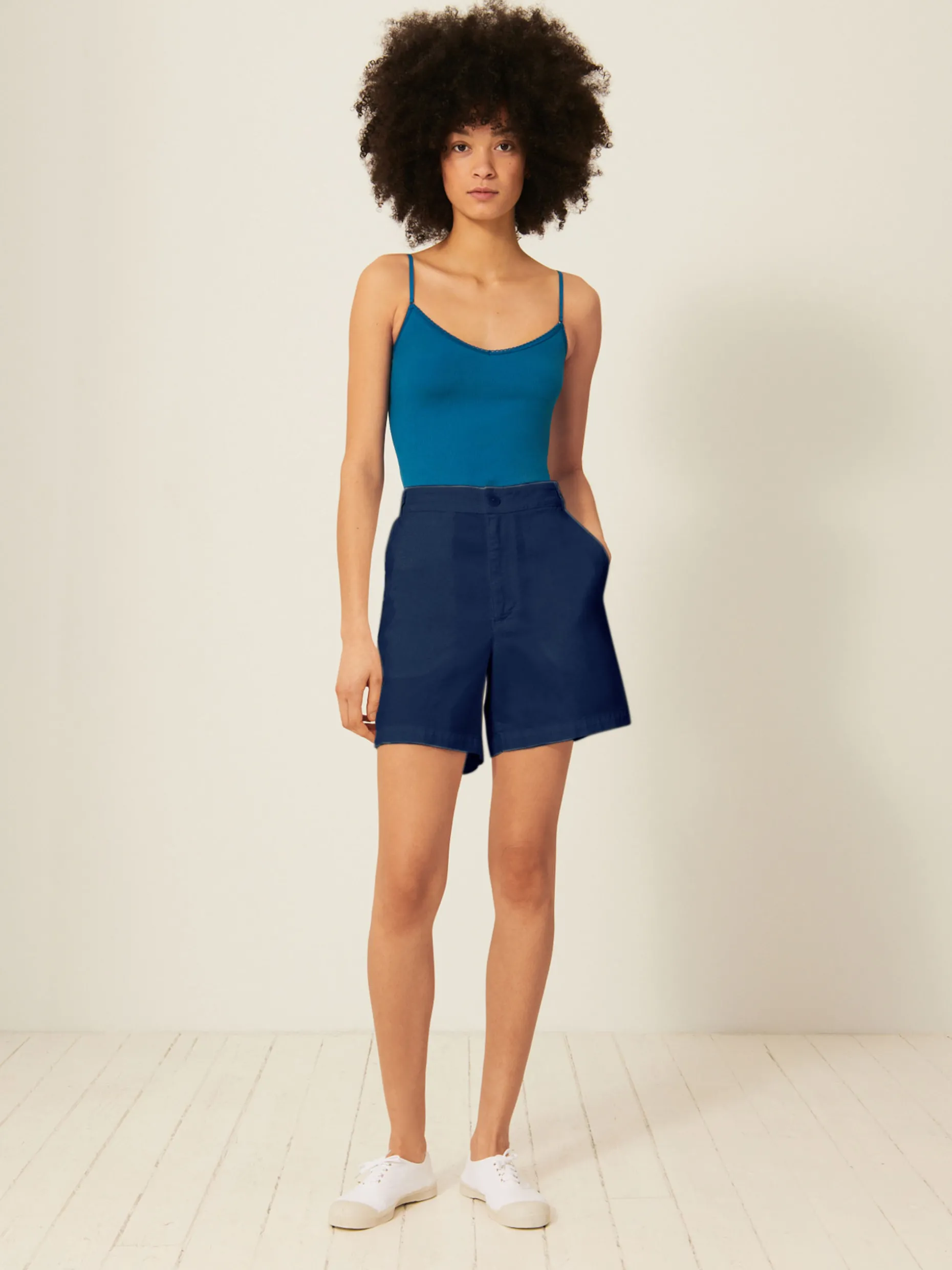 Gabardine iconique. On colore notre toile de coton fétiche aux couleurs de l’été pour en faire un incontournable de la saison : le Chino. Un pantalon détourné du vestiaire masculin mais que l’on féminise en associant une taille mi-haute à une coupe un peu loose sur les hanches et la jambe. On vous laisse admirer le travail de la double surpiqure. Un montage qui prend tout son sens puisque l’on utilise une technique en prêt à teindre. C’est-à-dire que ce short est d’abord de couleur écrue puis est teint une fois totalement monté.