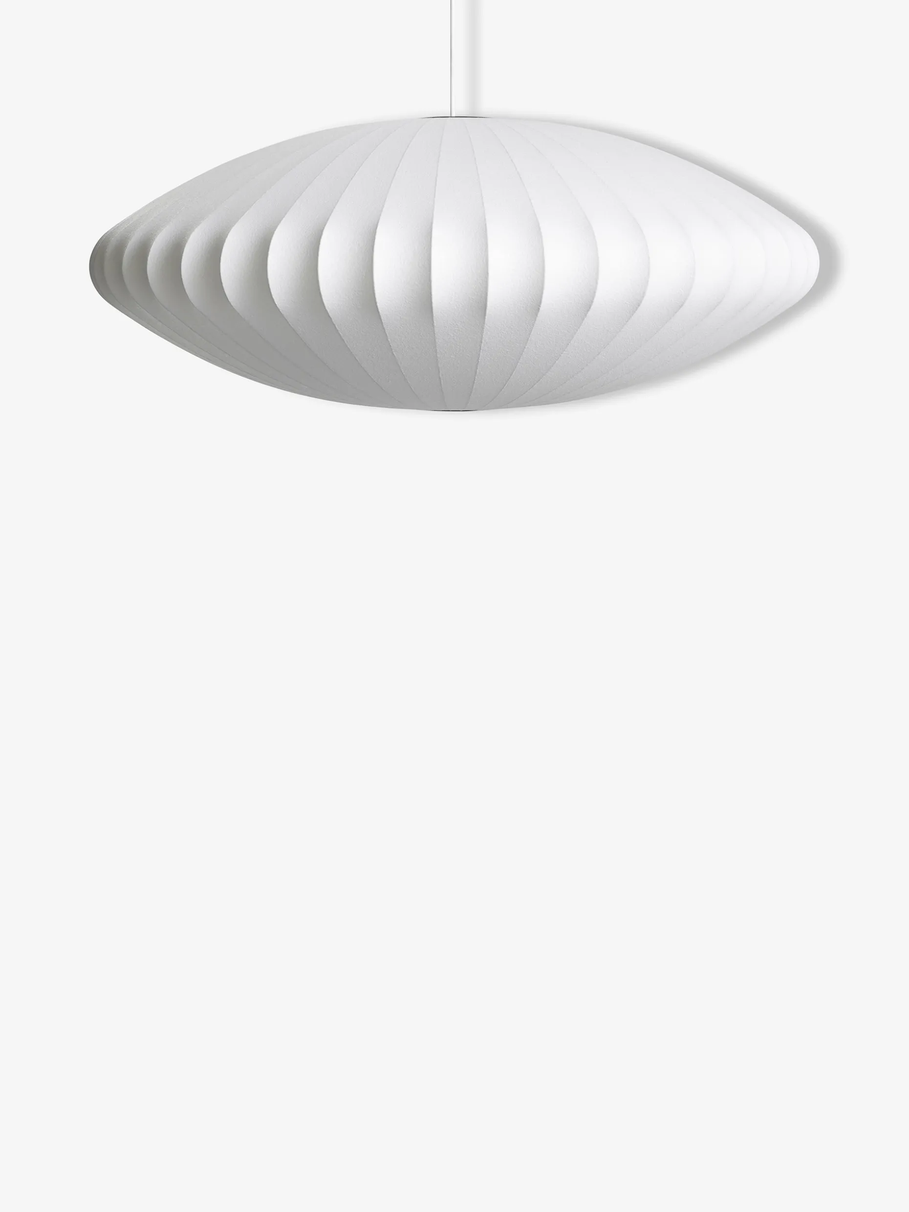 Expédition sous 4 à 6 semainesLes suspensions Bubble, aux formes sphériques diverses, apportent une touche de douceur et de luminosité diffuse. Conçues en 1952 par George Nelson, ces lampes élégantes reposent sur une armature en acier robuste et légère tout en formant un ensemble aérien et délicat. Nelson fut inspiré par un ensemble de lampes pendantes suédoises recouvertes de soie qu’,il souhaitait acquérir pour son bureau. Malheureusement, leur prix lui sembla inabordable. Nelson étant un designer aussi astucieux que débrouillard, il se lança dans la création du premier ensemble de lampes Bubble en procédant à l’,aspersion d’,une résine blanche et translucide, une technique développée à l’,époque par l’,armée américaine. Nelson puisa son inspiration dans diverses formes simples et authentiques pour concevoir ces suspensions.