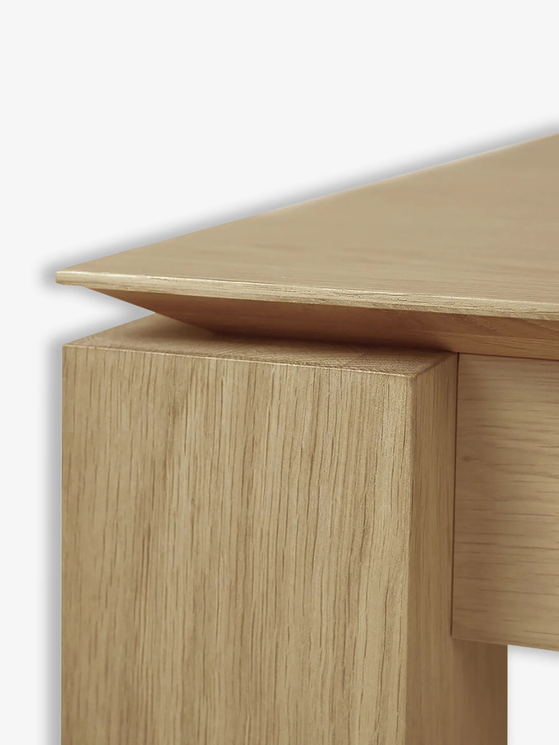 La table Slice en chêne massif dessinée par Alain van Havre est une pièce maîtresse de votre espace de vie. Une silhouette sublimée par des lignes massives et une construction solide et épurée lui donnent un caractère intemporel dont vous pourrez profiter pendant de nombreuses années. Cette table dispose d’une rallonge intégrée, facile à manipuler, qui permet de recevoir plus de convives, sans discontinuité apparente du motif du grain du bois.