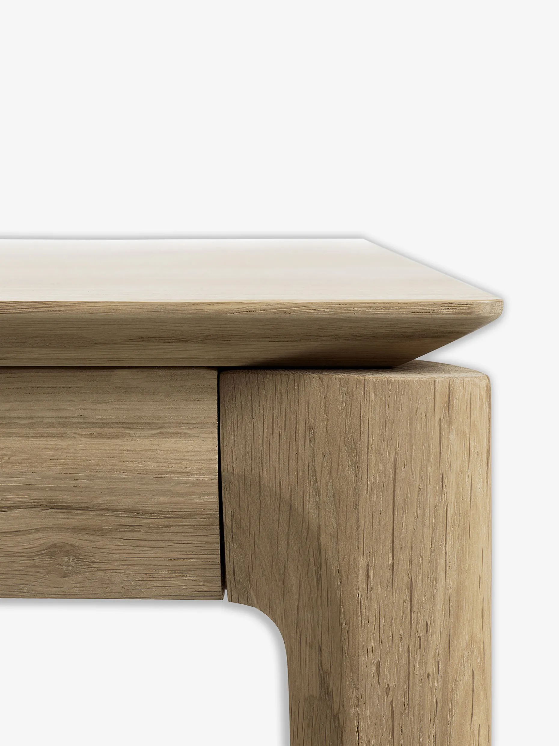 Avec la collection de tables Bok, le designer Alain van Havre signe une série de tables en chêne massif dont le détail du plateau légèrement décalé fait la particularité. La forme aérienne emblématique et la construction solide de la gamme Bok en font un design intemporel dont vous pourrez profiter pendant de nombreuses années dans votre salle à manger ou votre cuisine. Les chaises de la collection Bok se marient à la perfection avec cette table. Dans un souci de beauté authentique, le bois sélectionné au sein de forêts européennes peut contenir des noeuds et des fissures naturelles qui font de chaque meuble une pièce unique. Disponible en plusieurs tailles.