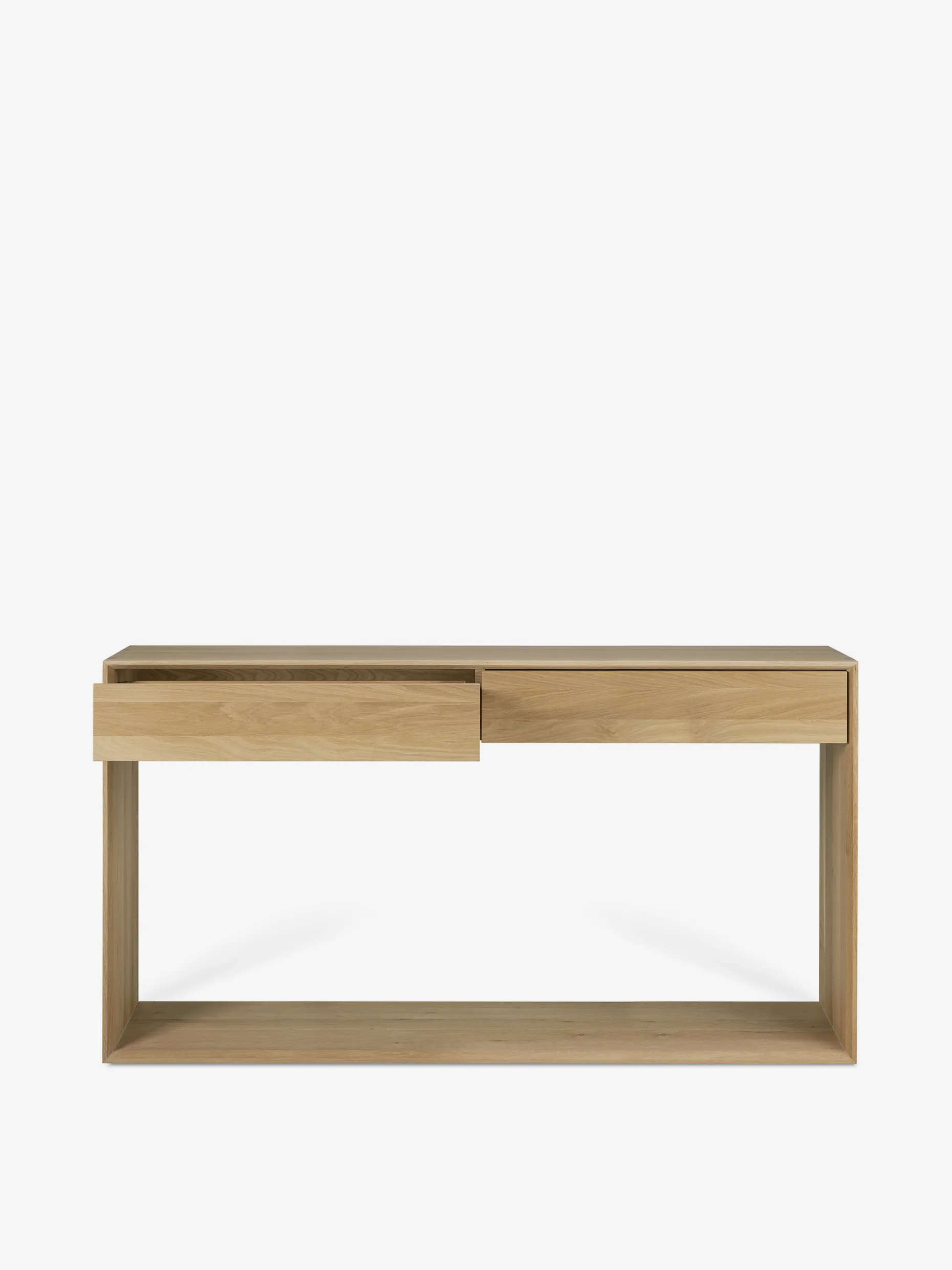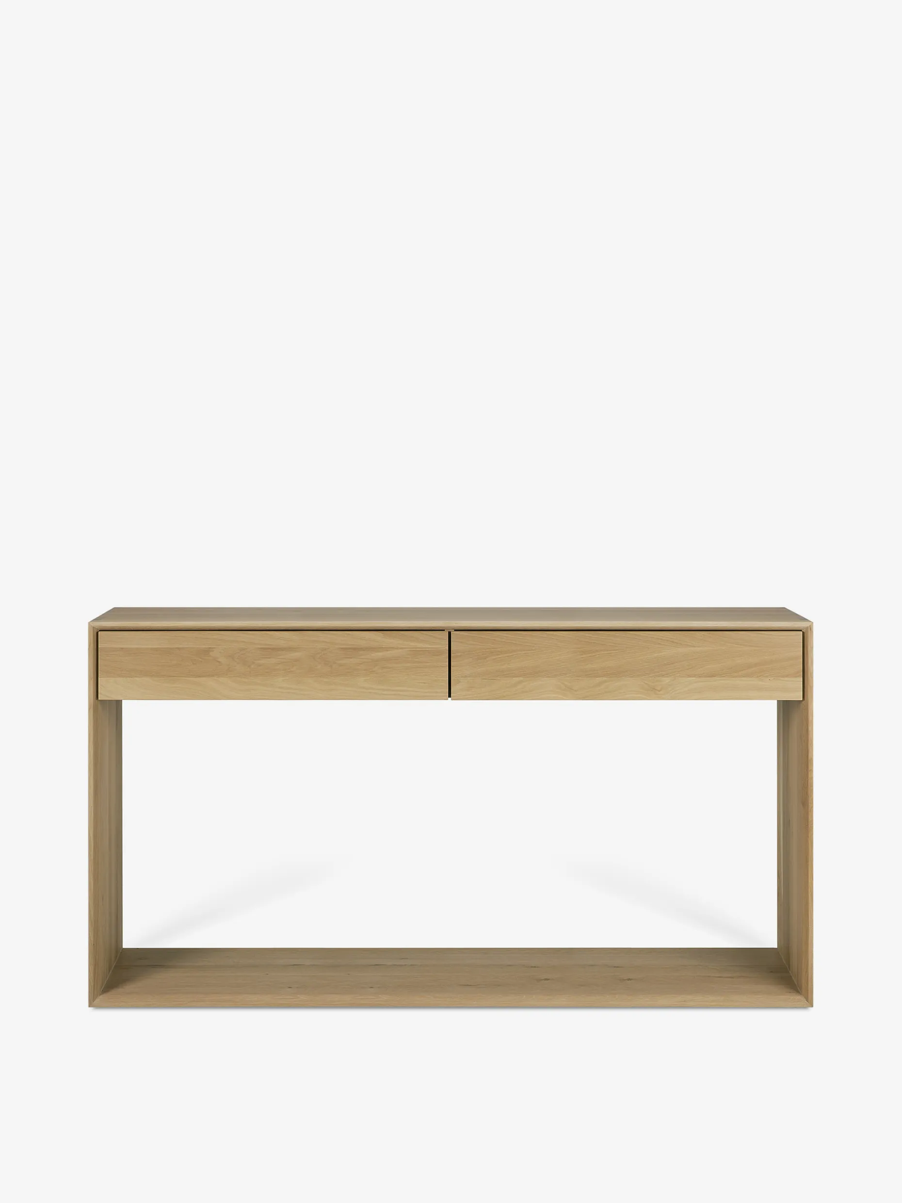 Cette table de chevet a été conçue pour accompagner le lit Nordic II. Dans un style épuré et minimaliste, elle se place au mur et évite tout encombrement au sol. Dans un souci de beauté authentique, le bois sélectionné au sein de forêts européennes peut contenir des noeuds et des fissures naturelles qui font de chaque meuble une pièce unique.