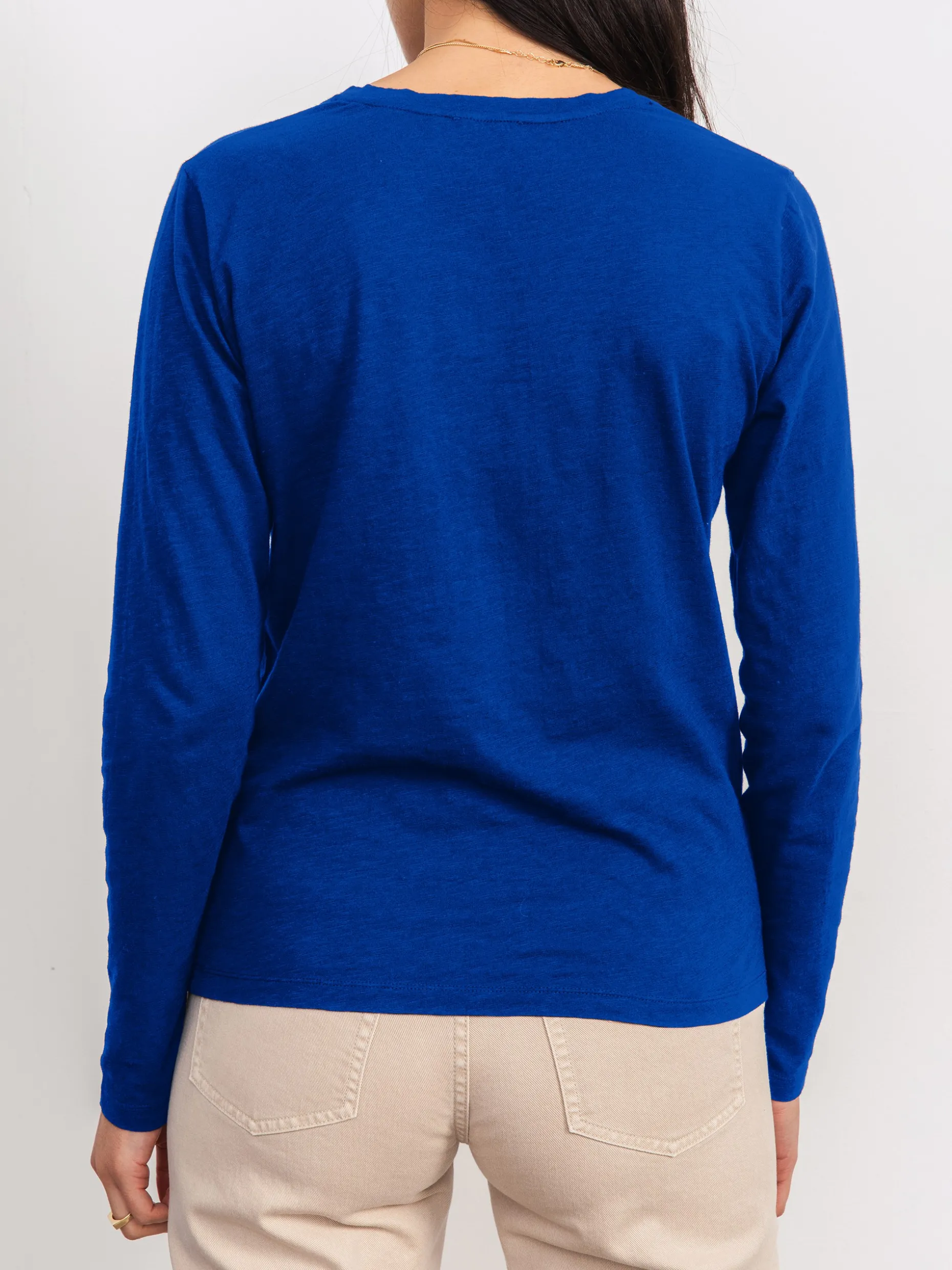 Le t-shirt Août avec son col V apporte une touche d’élégance à ce basique du vestiaire. Il a été conçu en coton flammé, un tissage irrégulier qui apporte du caractère aussi bien au tissu qu’à votre tenue. Doté de manches longues, il est l’allié parfait quand le soleil vous dit à demain.