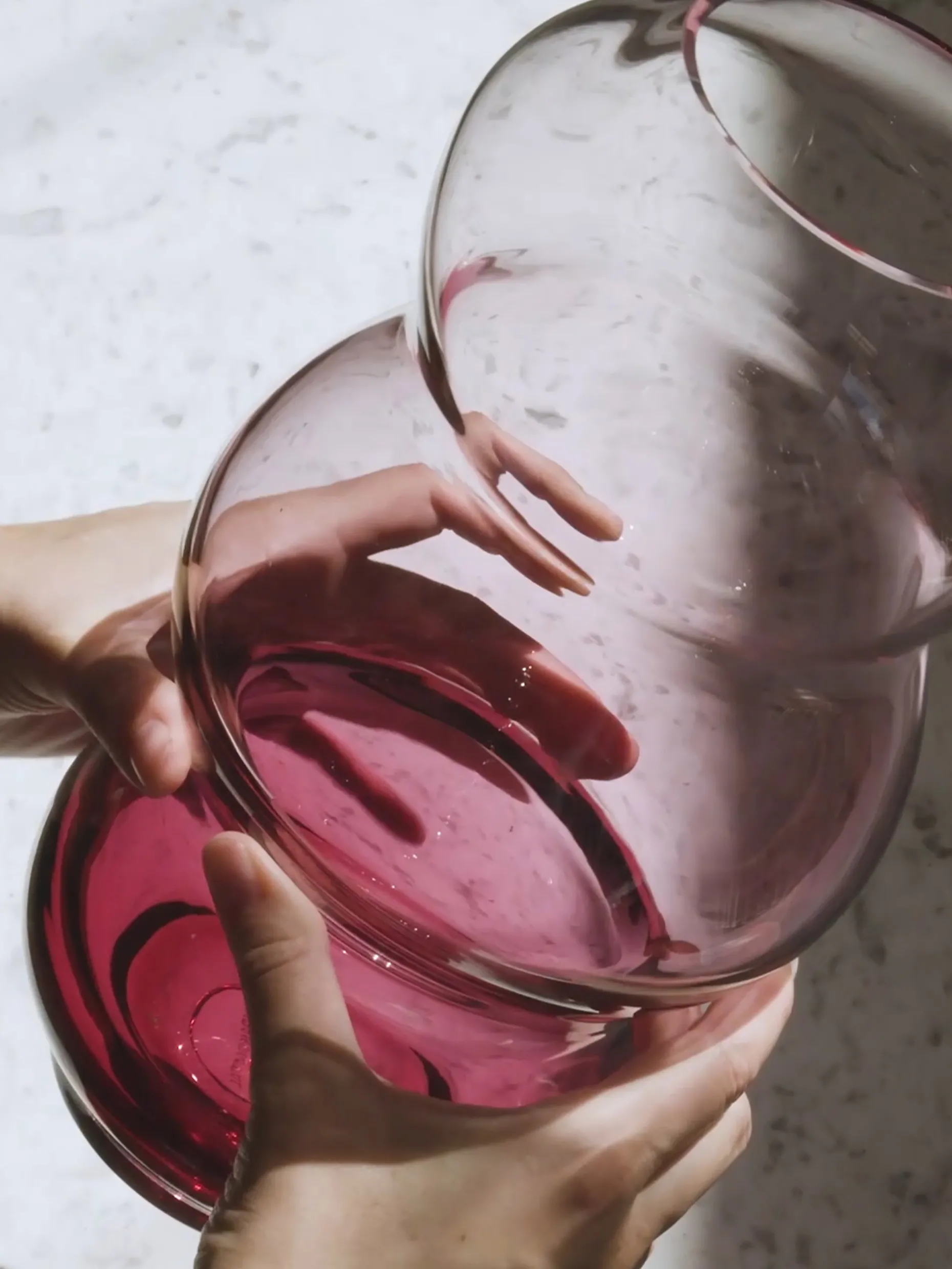 La distribution du pigment dans le verre est inégale, chaque vase est unique, et certaines différences d’intensité et de gradient apparaîtront d’un vase à l’autre.