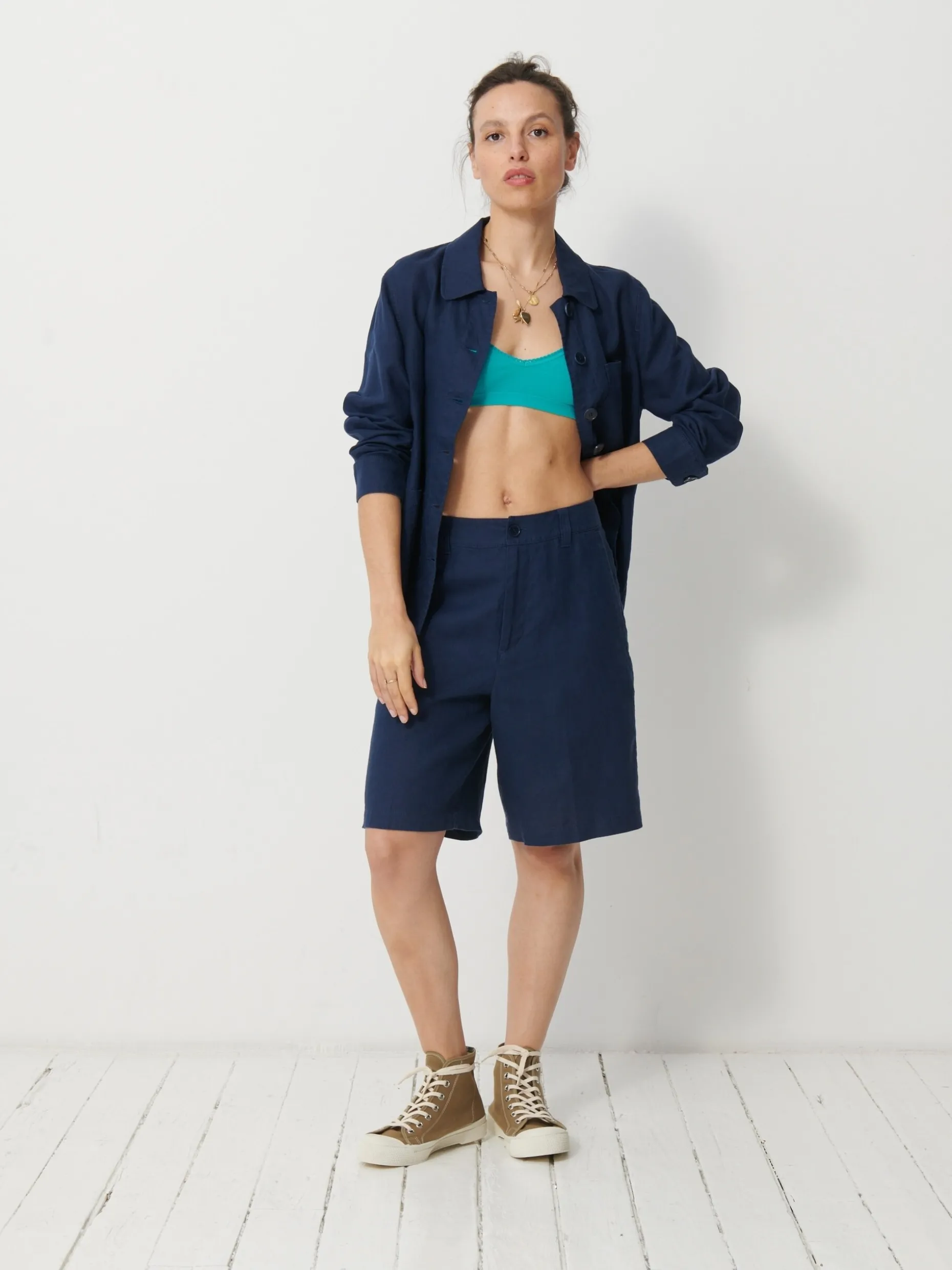 La veste Golta est boutonnée sur le devant avec un col classique et des poches plaquées. Ses manches sont longues avec des poignets boutonnés.