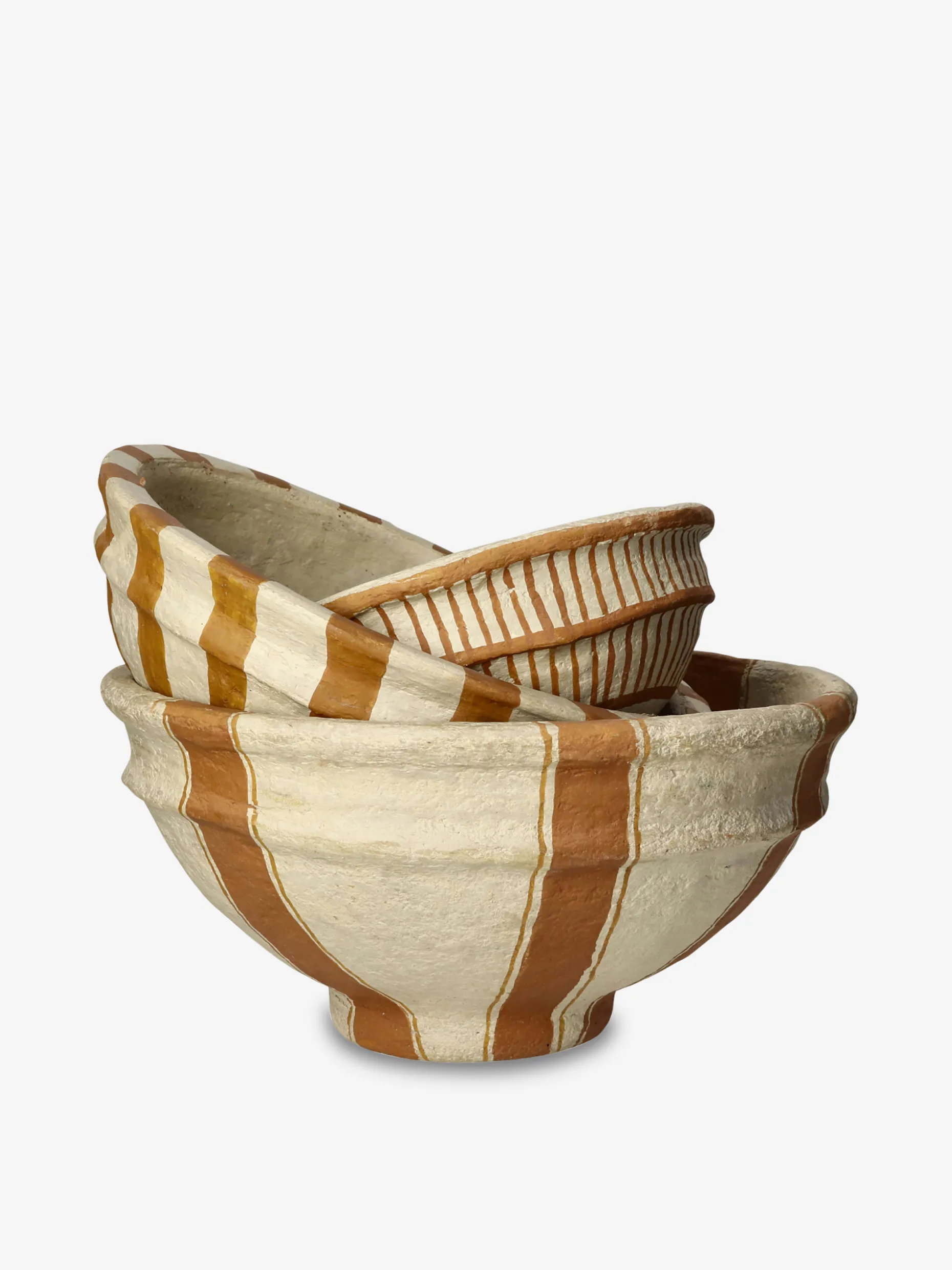 À la recherche de bols décoratifs qui respirent l’été ? Découvrez nos sets de trois bols Naxos. D’inspiration méditerranéenne, ces six jolis ensembles sont réalisés à la main. Conçus en papier mâché, chacun d’entre eux est donc une pièce unique. Les bols Naxos sont également rehaussés de motifs estivaux et colorés dans des nuances de bleu, de vert ou d’ocre, peints à la main. À noter que le papier mâché ne doit pas être mis en contact avec l’eau.